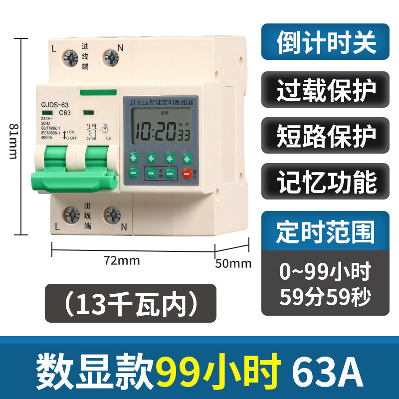 digital display model, 99 hours, 63a (within 13 kw)