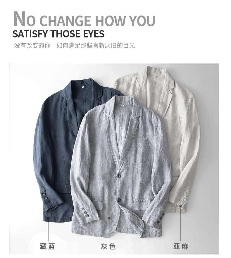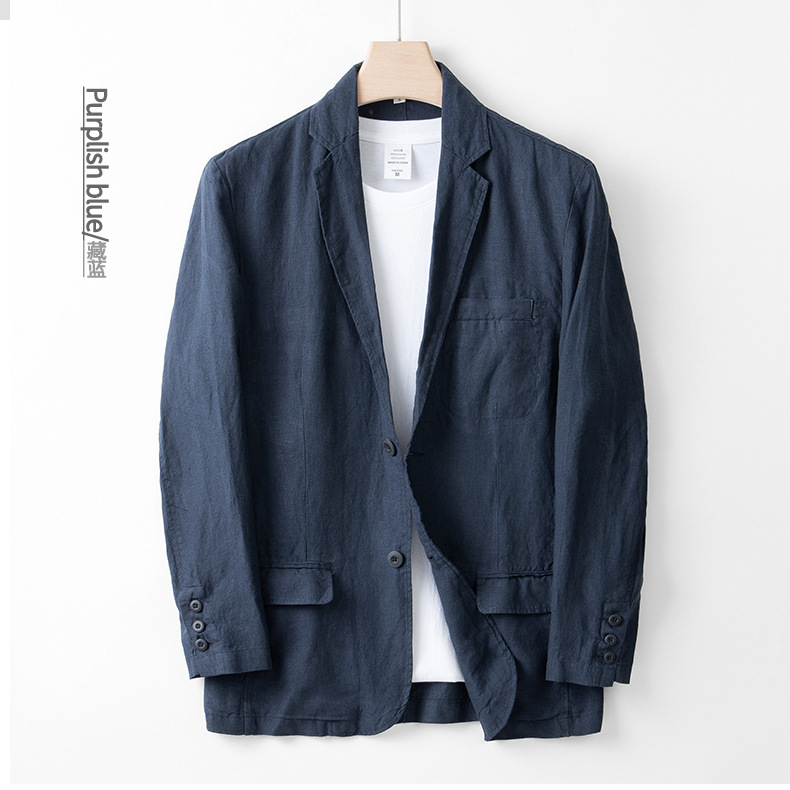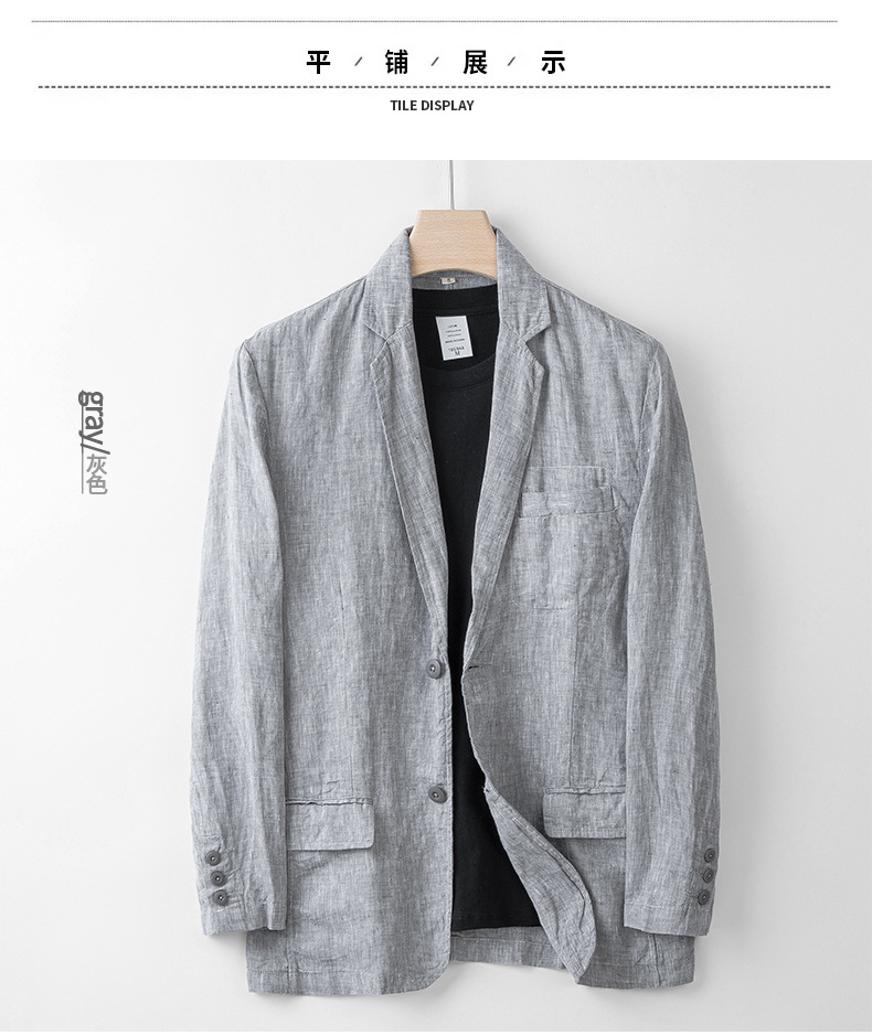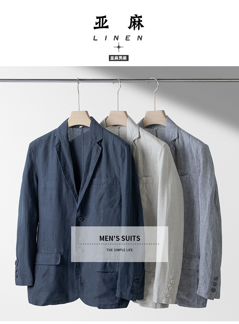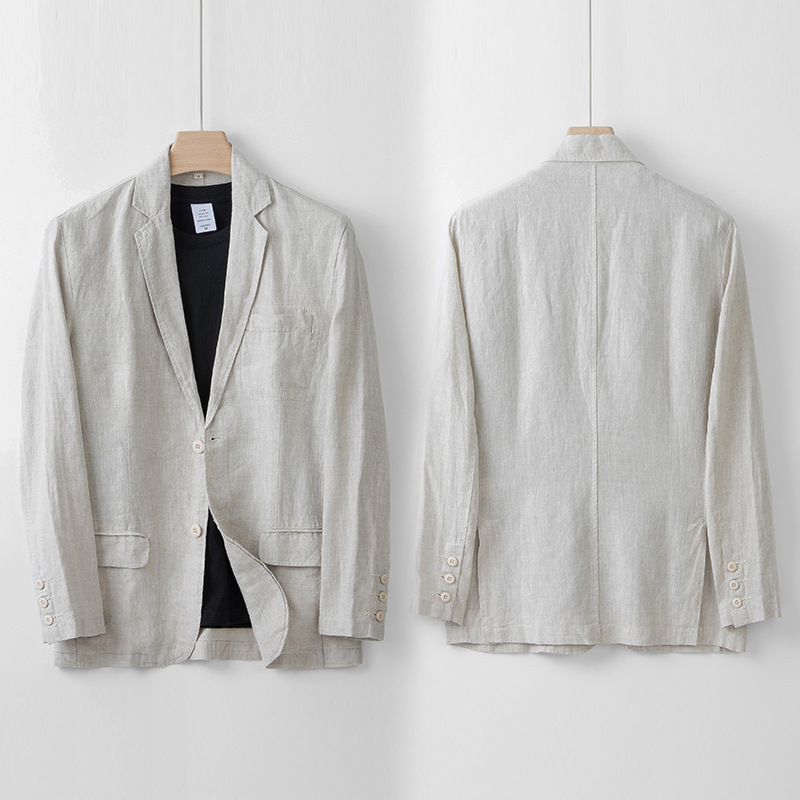 100% linen casual suit jacket men's italian style old money style linen suit thin spring and summer 051
