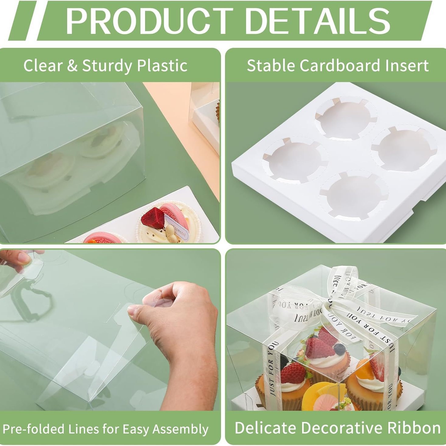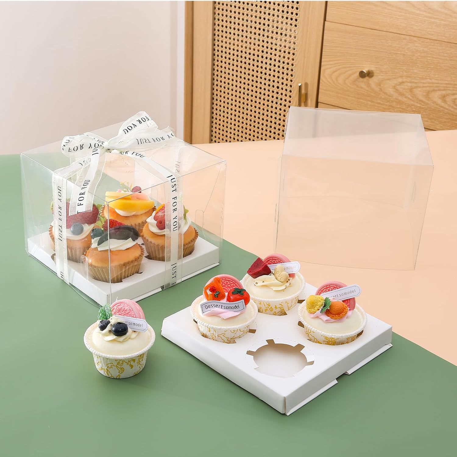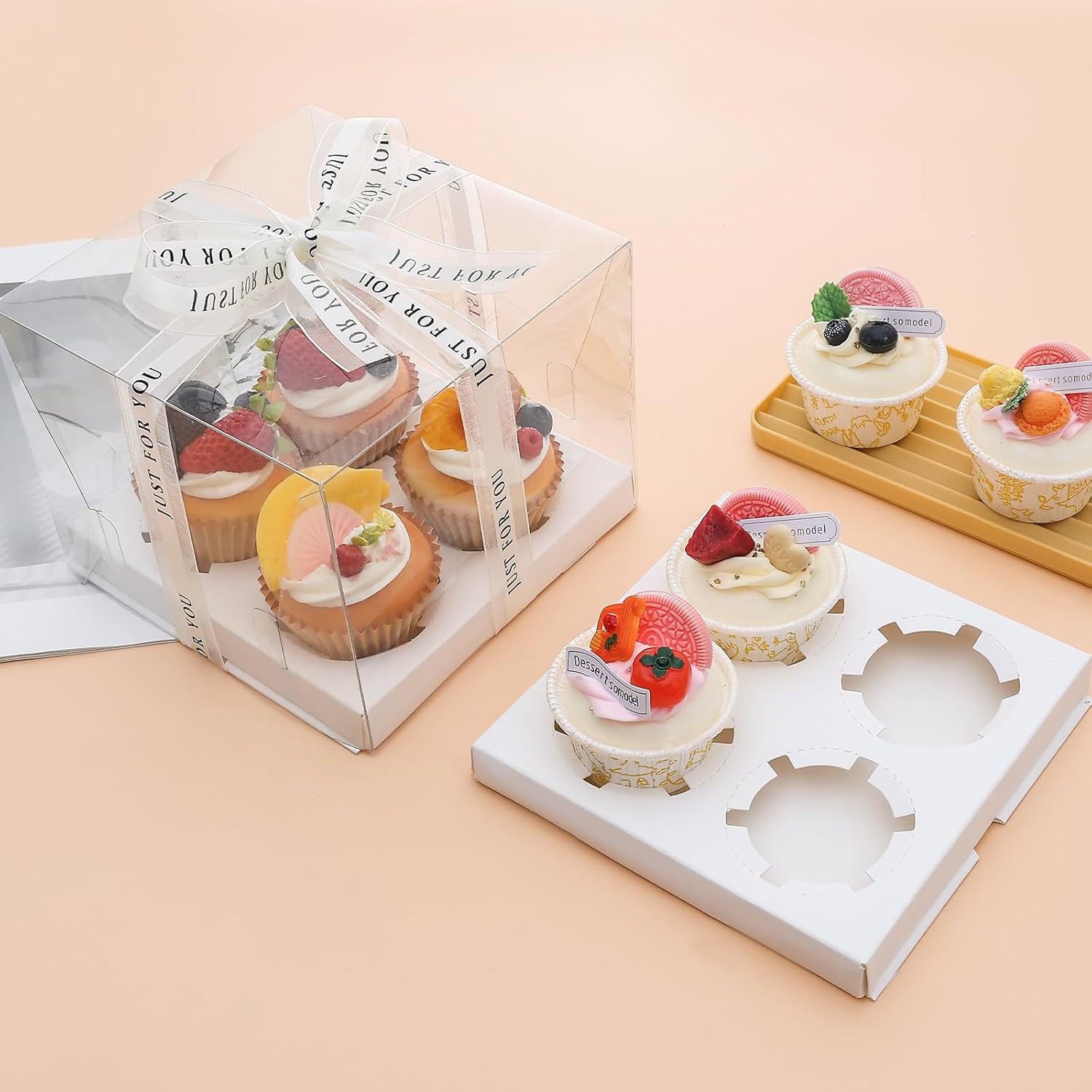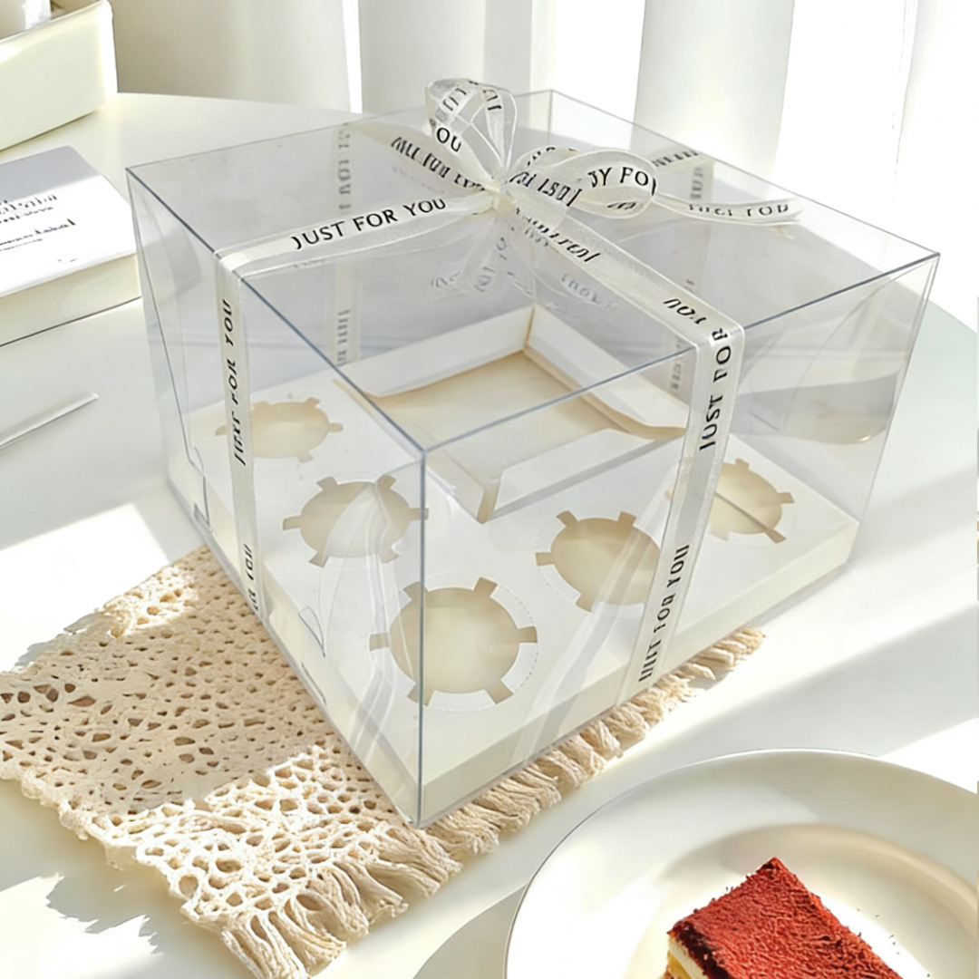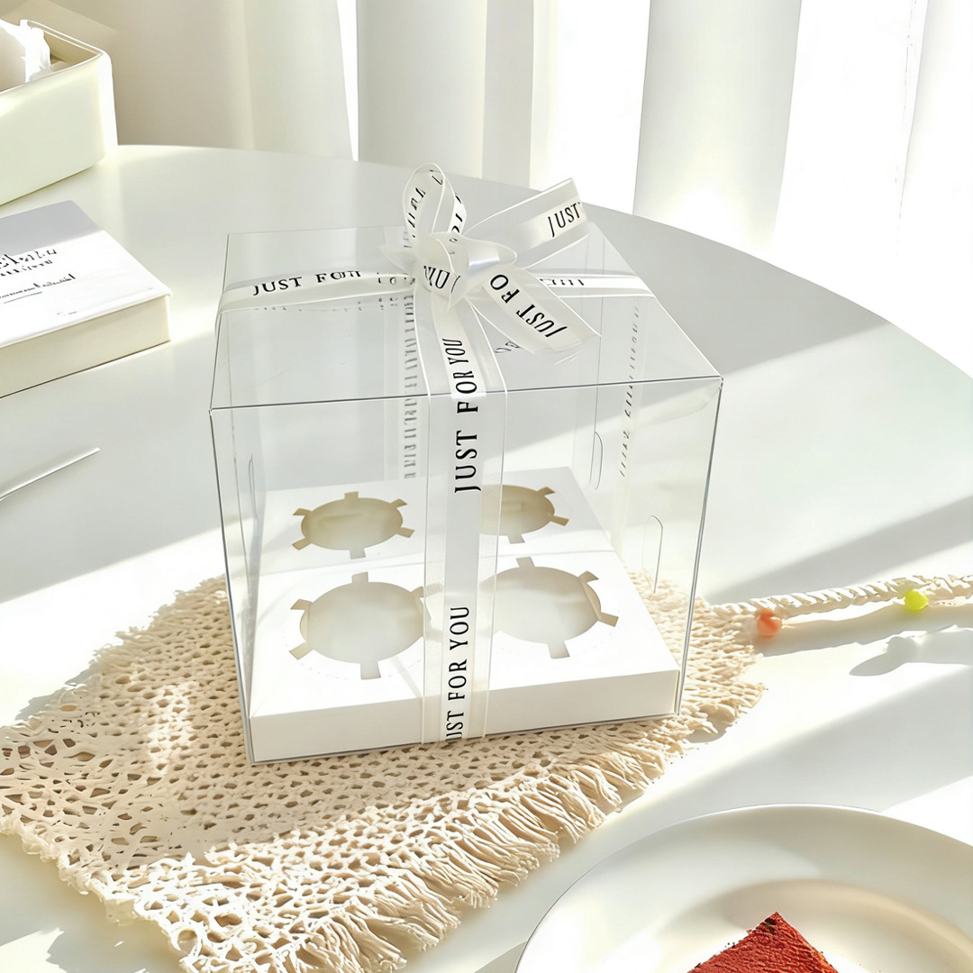 transparent 4-cup holder; white card + pet