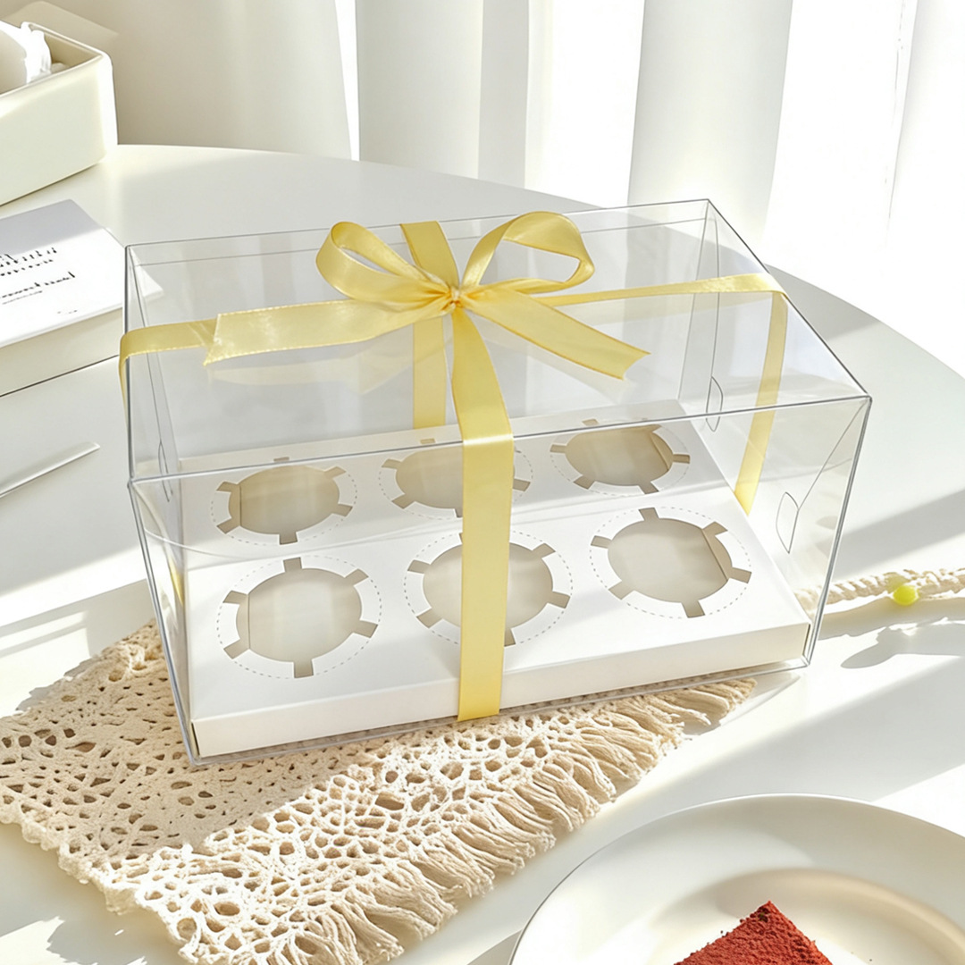 transparent 6-cup cup; white card + pet
