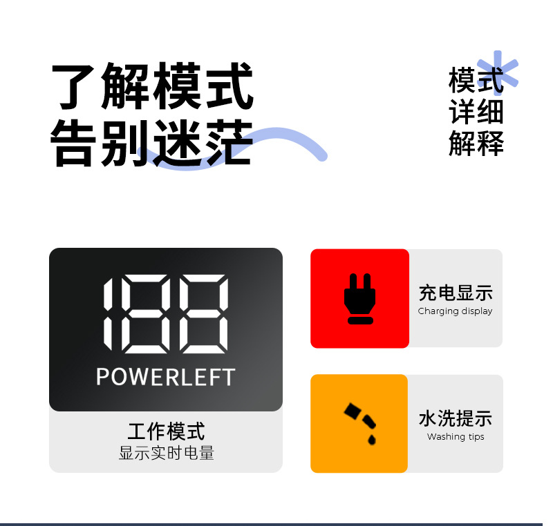 Battery level display, IPX6 waterproof