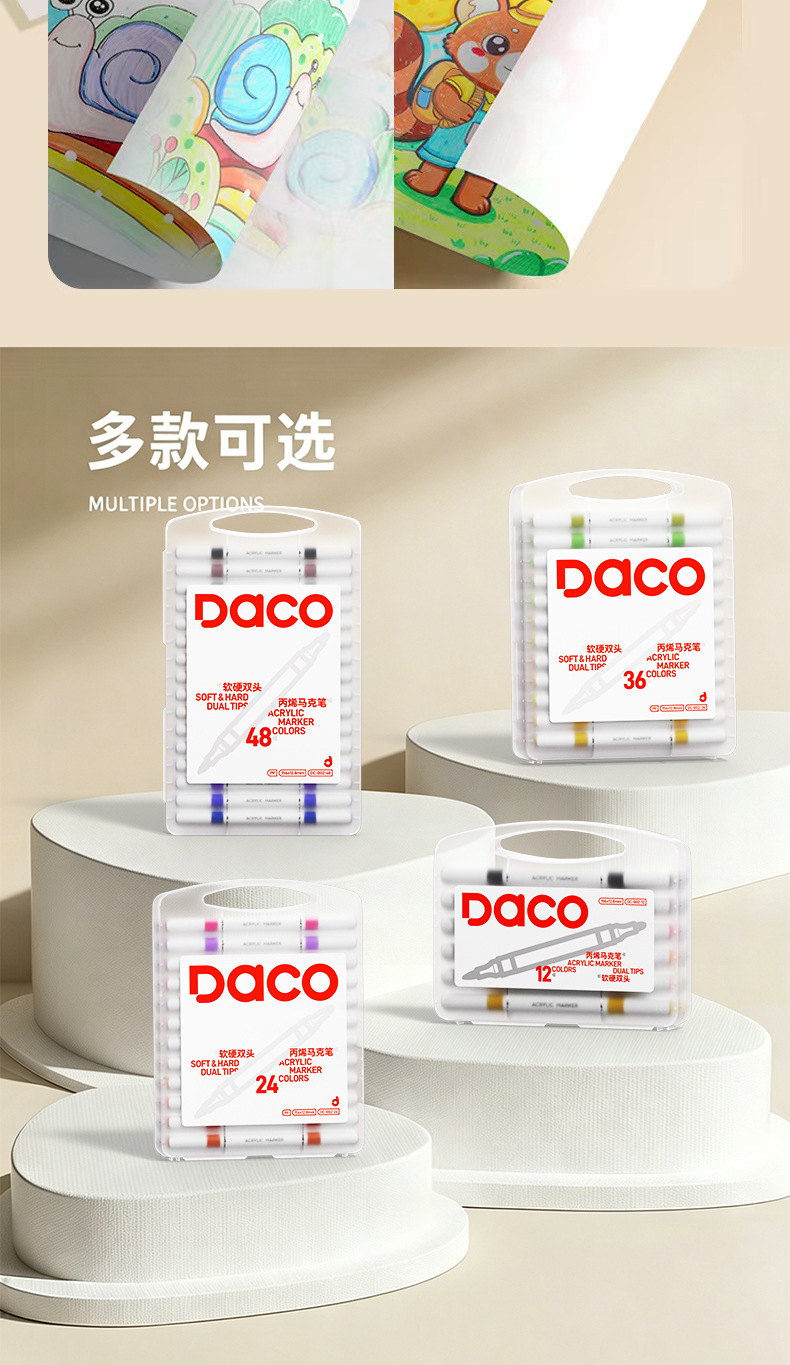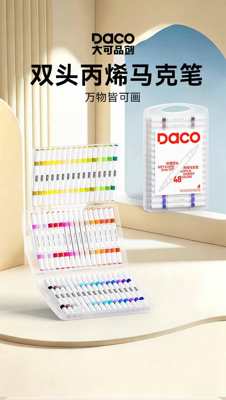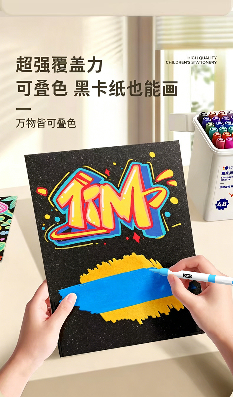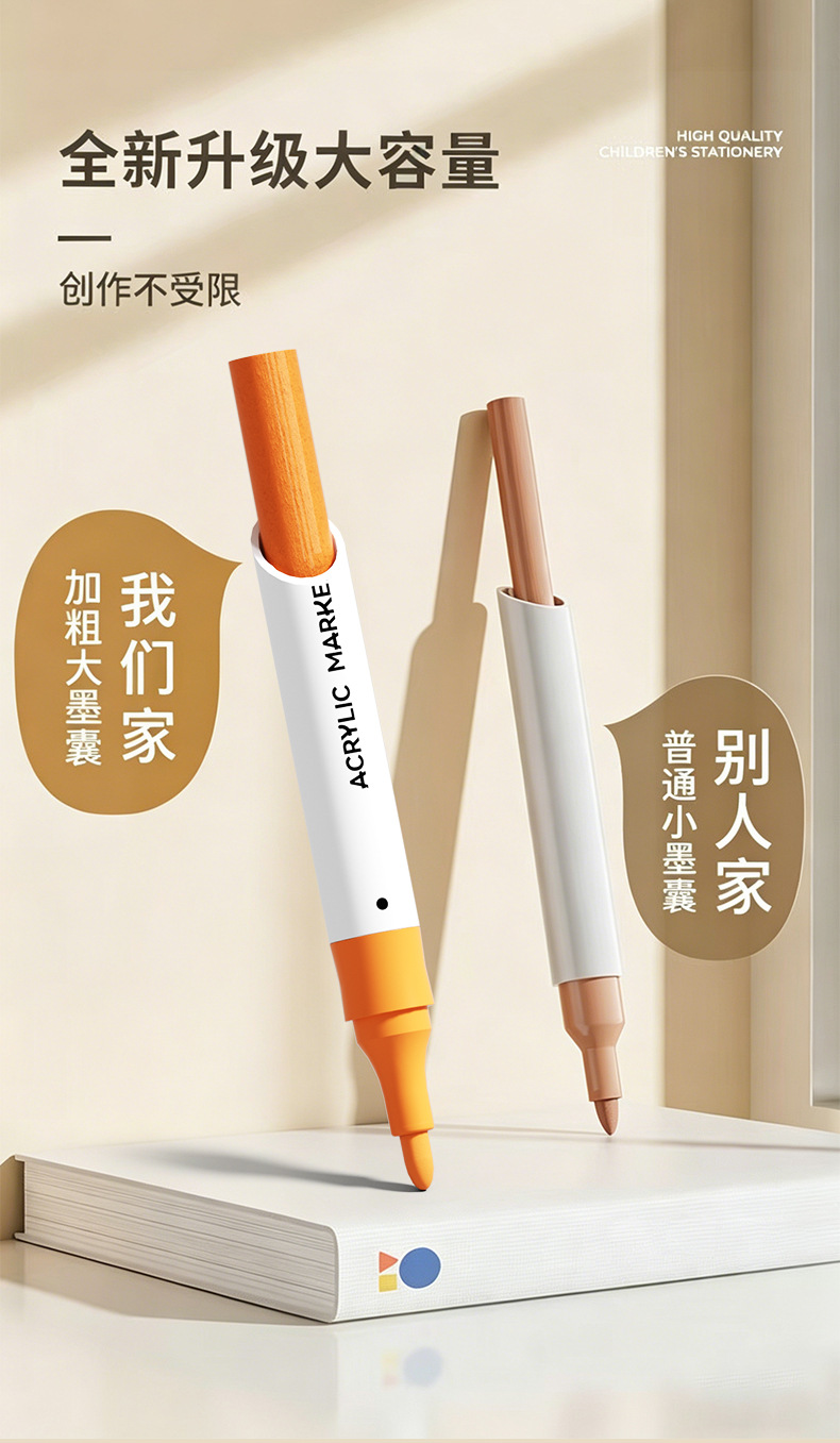 double-headed acrylic marker pen, specially designed for student art, strong coverage, opaque, stackable colors, graffiti painting brush
