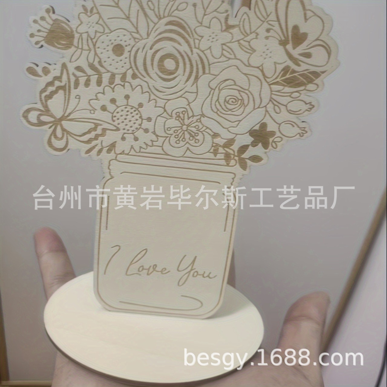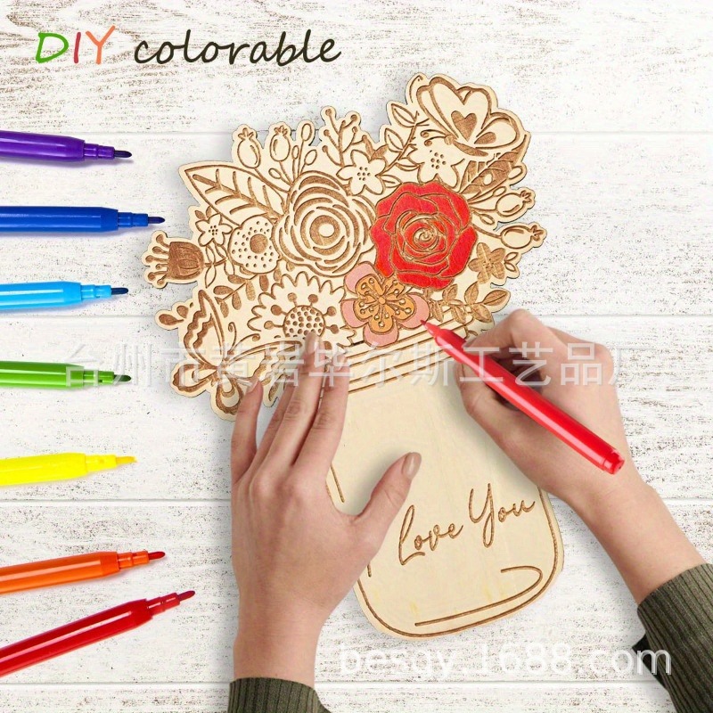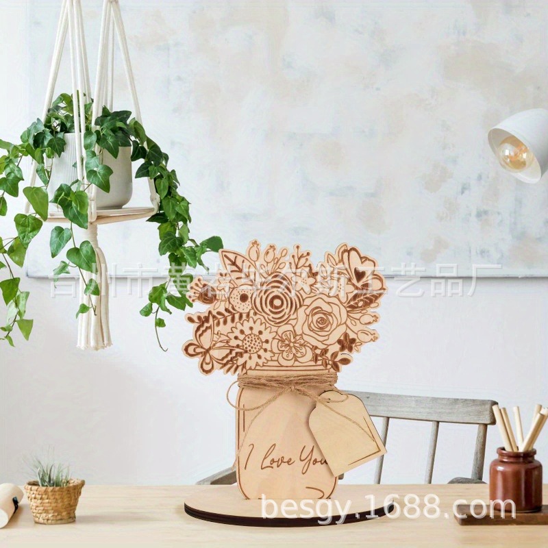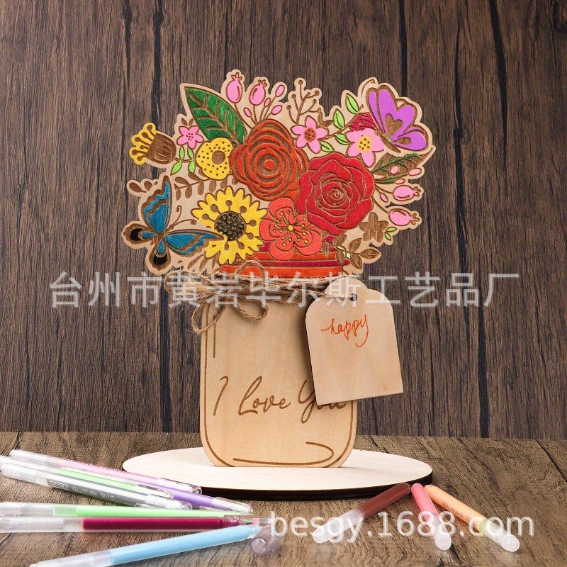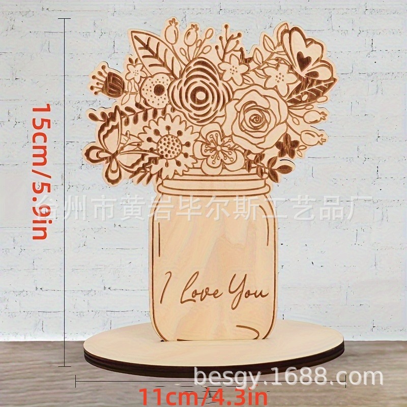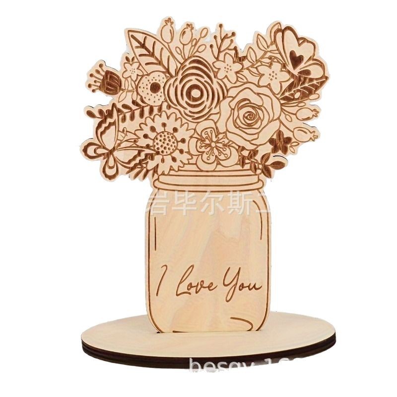 cross-border hot selling amazon mother's day flower card wooden blank bouquet with stand diy mother's day craft