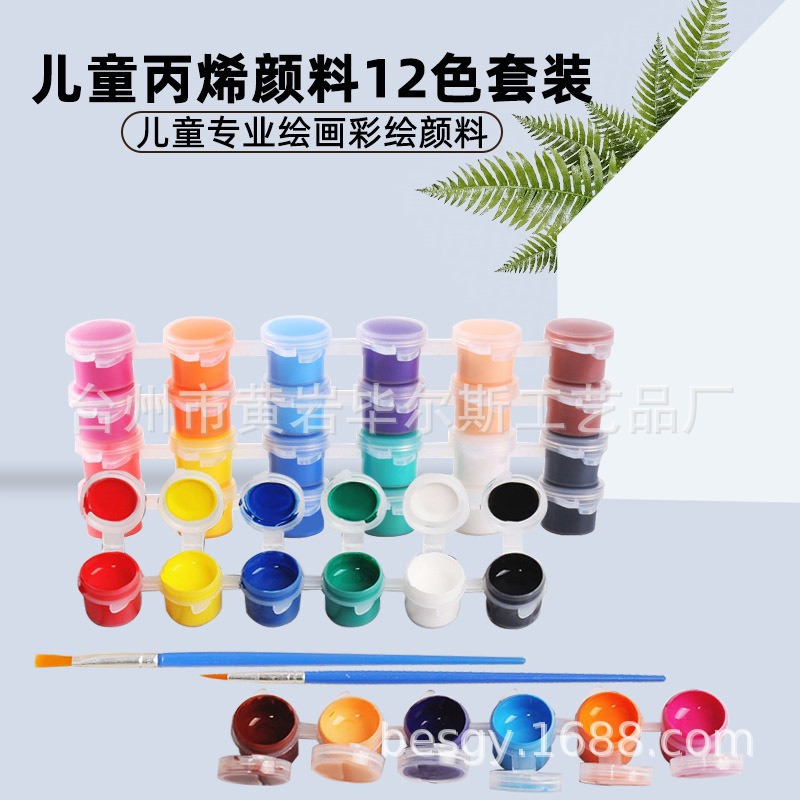 cross-border hot selling amazon acrylic paint 12-color set 6 colors brush student art painting coloring factory