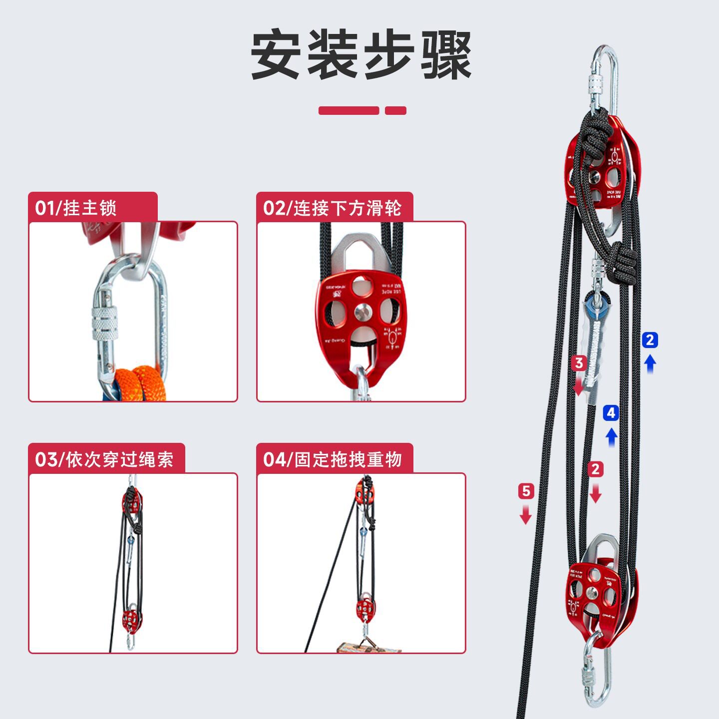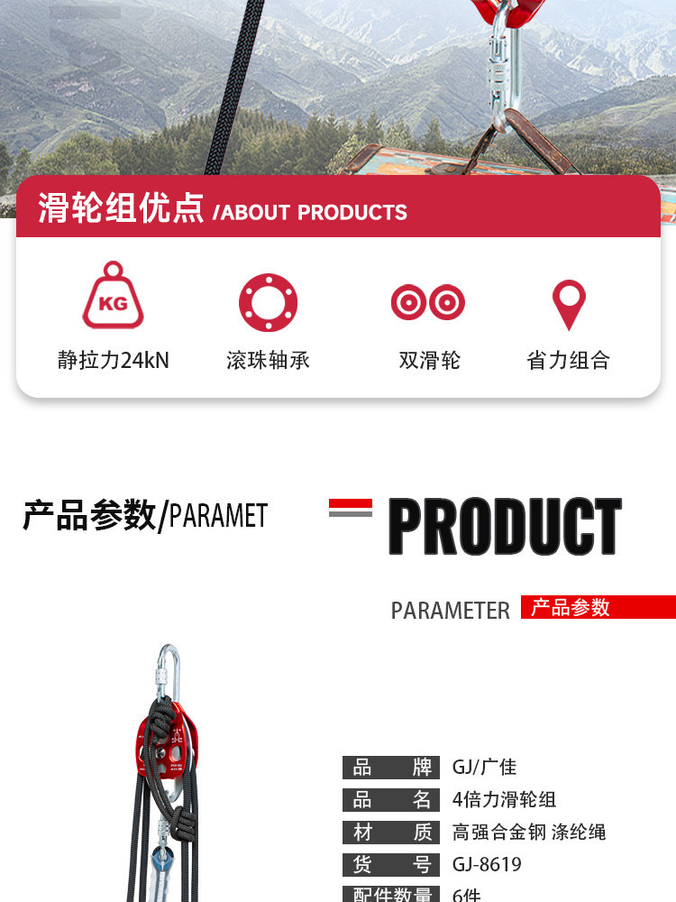 fourfold mechanical advantage [large pulley ◆ 40-meter kit]
