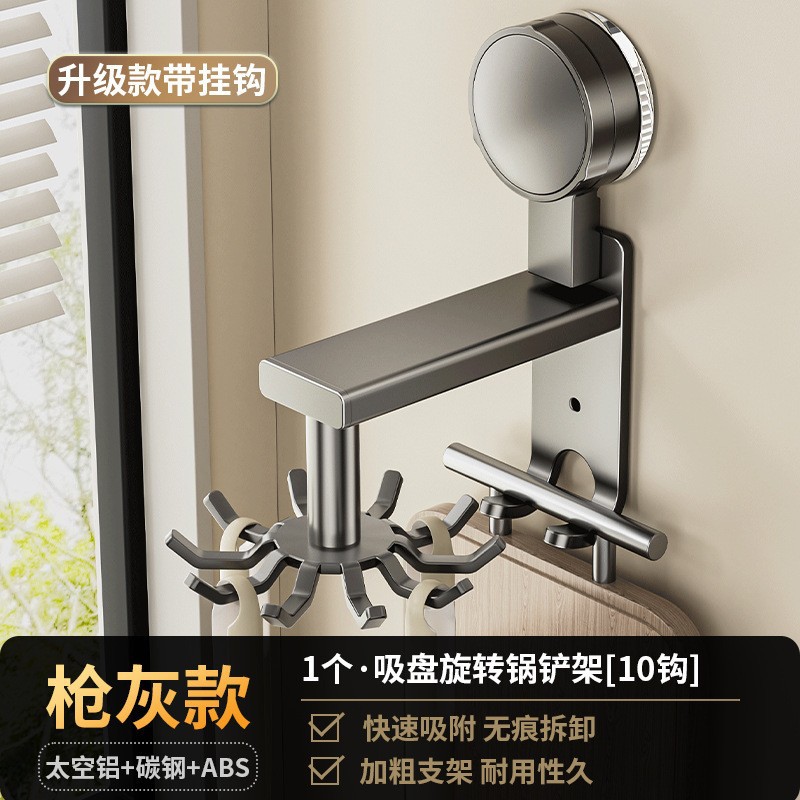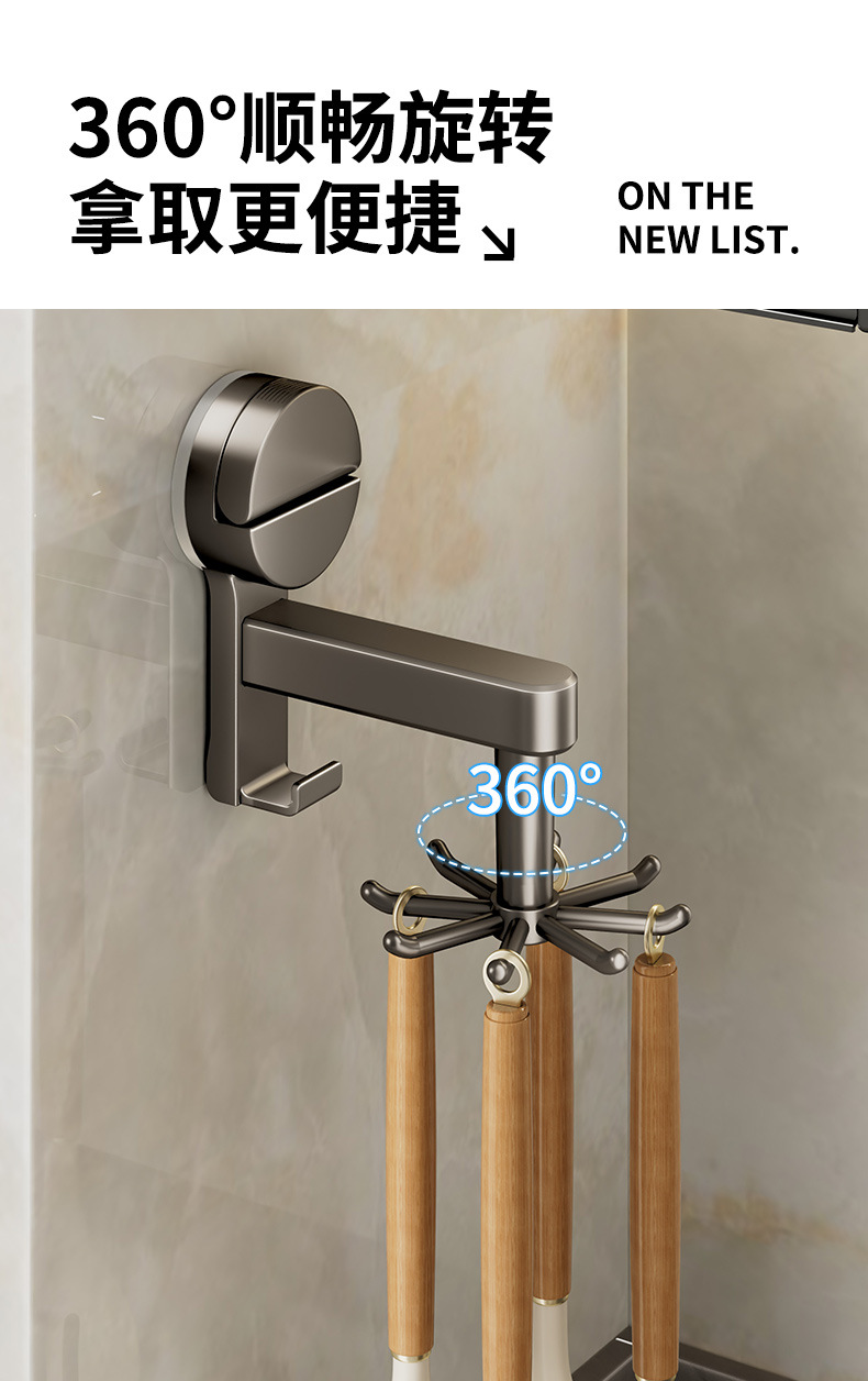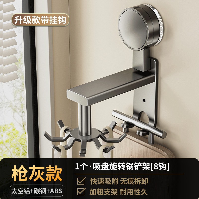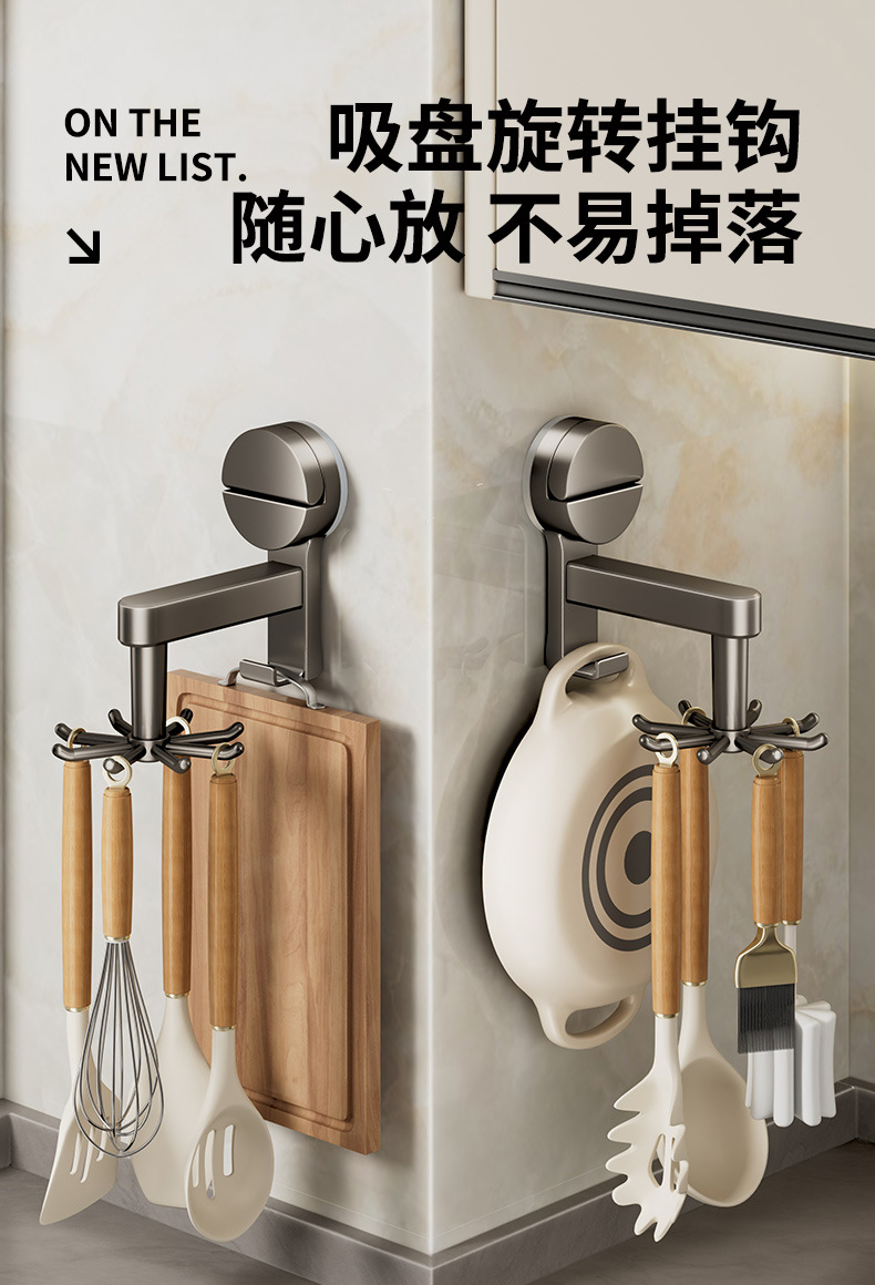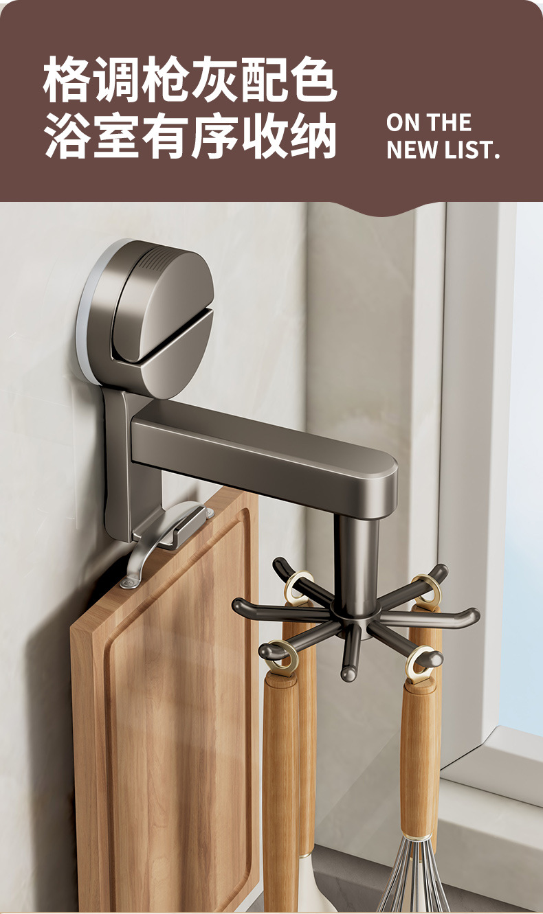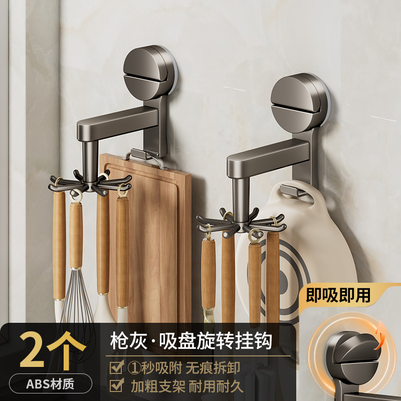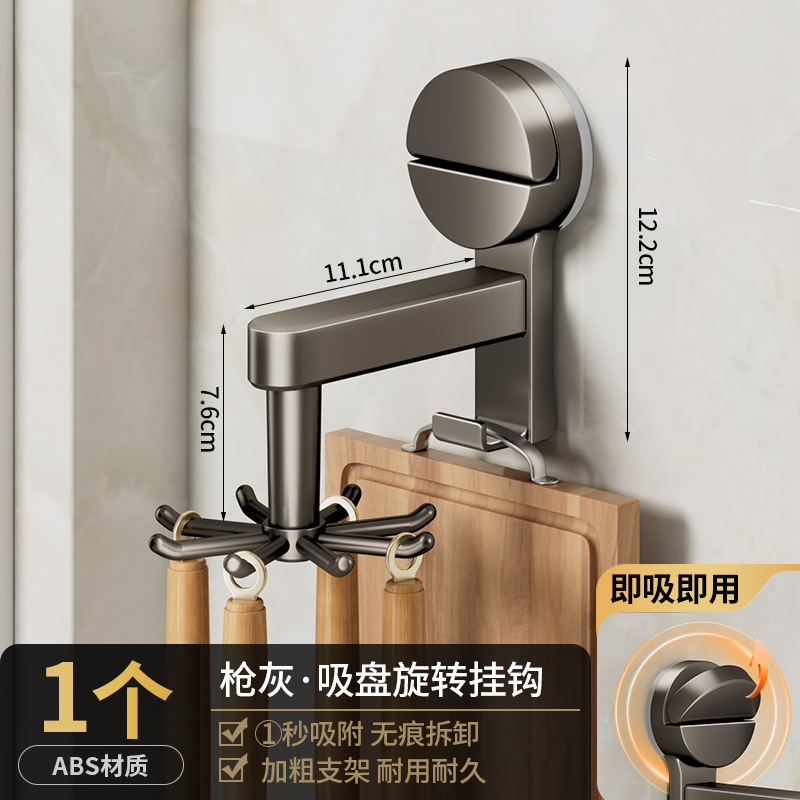 [gun gray] suction cup rotating hook with 8 hooks