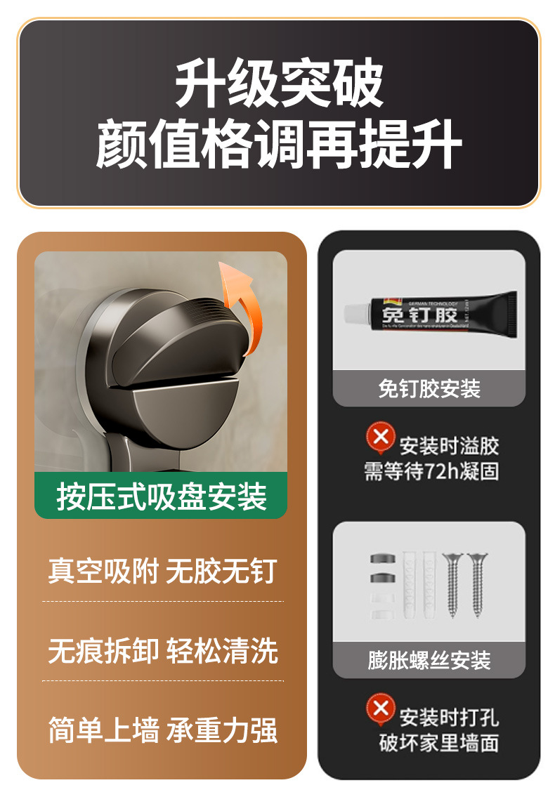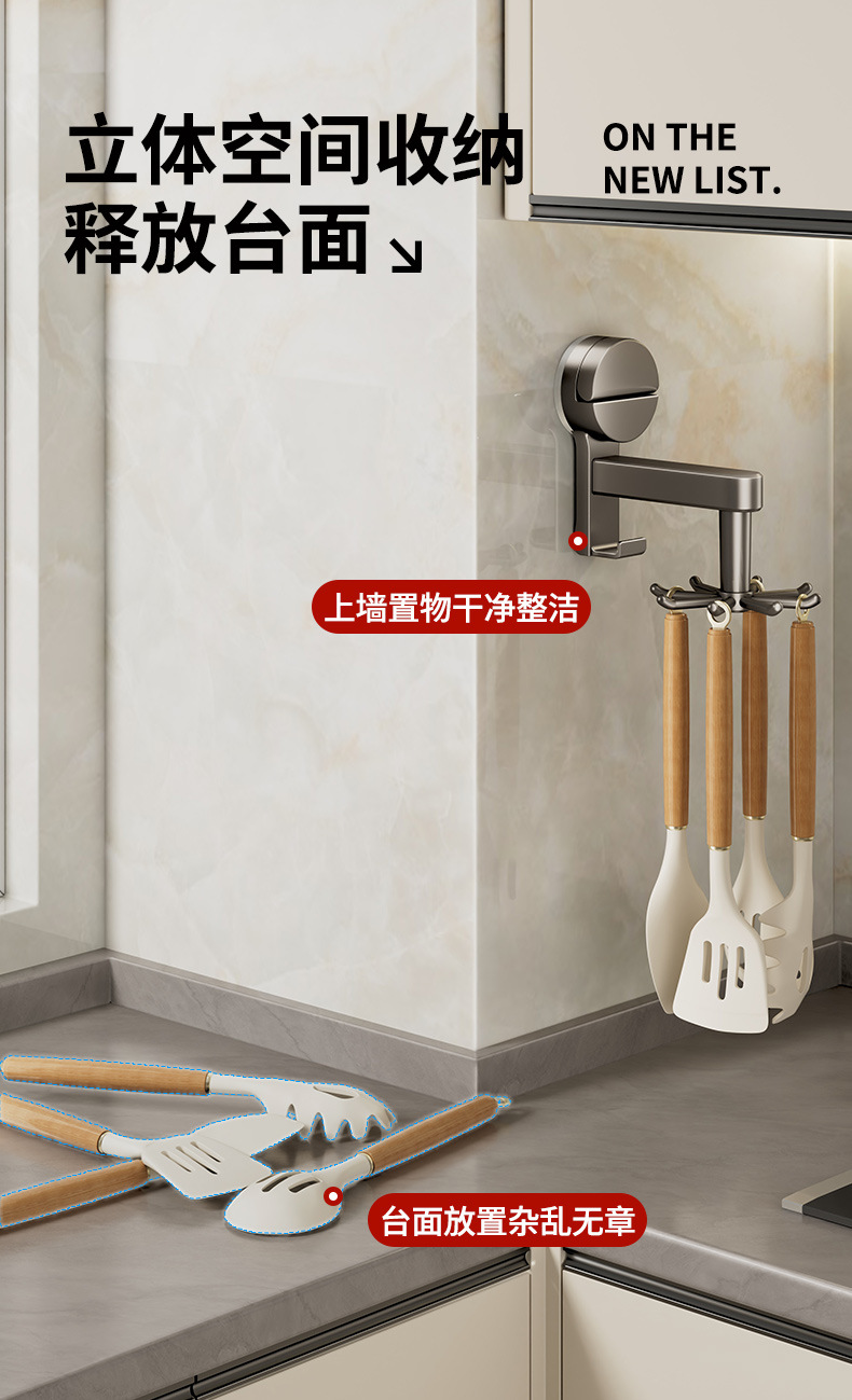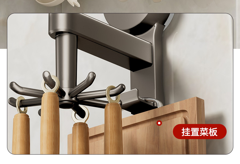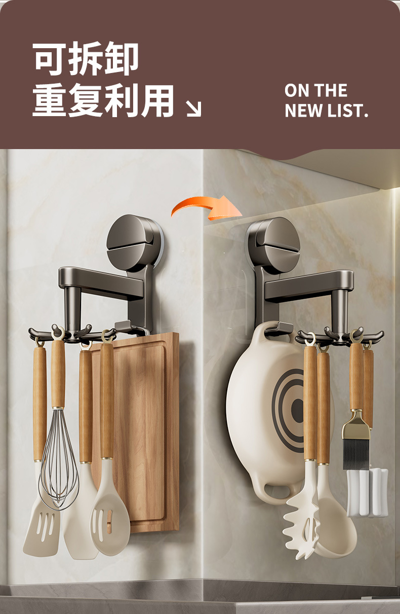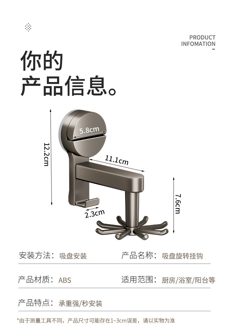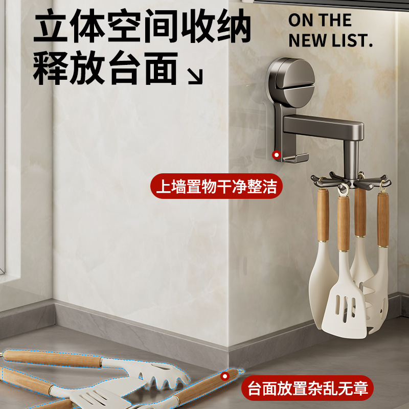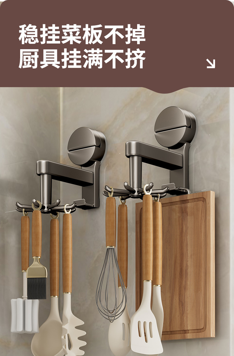 [gun gray] suction cup rotating hook with 8 hooks