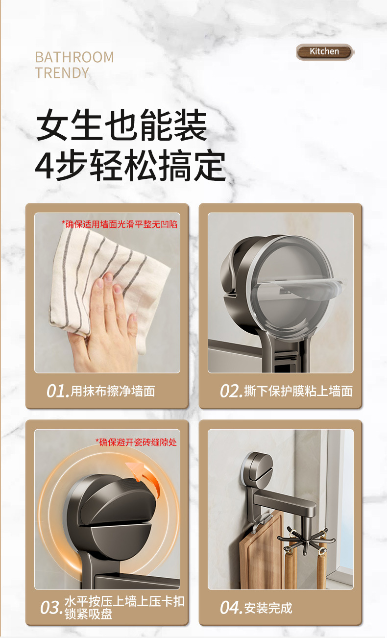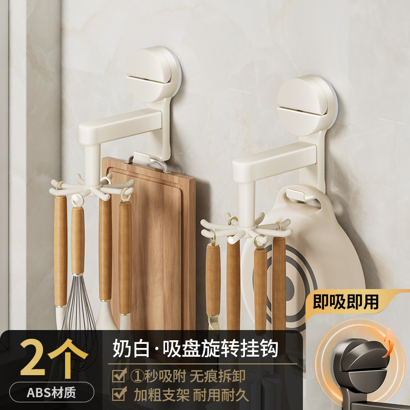 [cream white] suction cup rotating hook with 8 hooks
