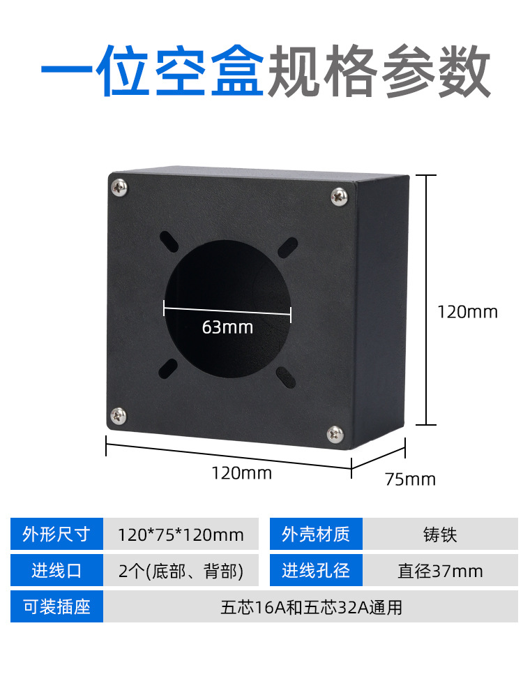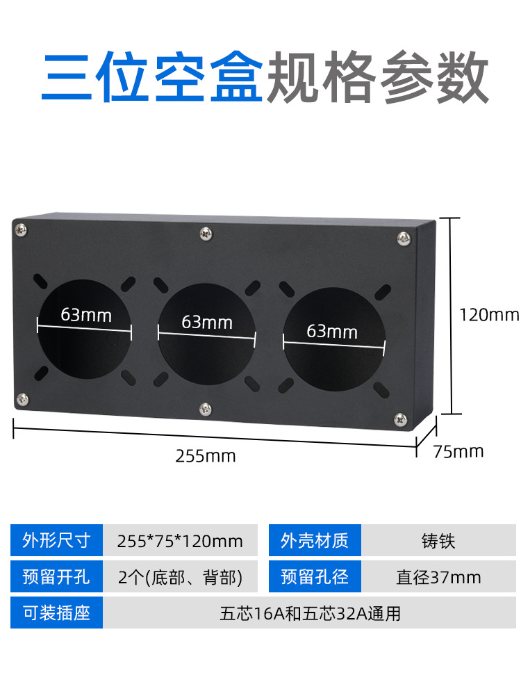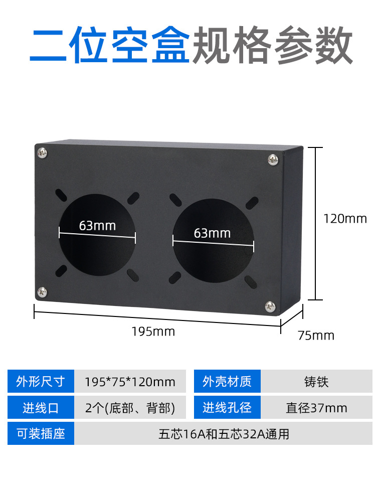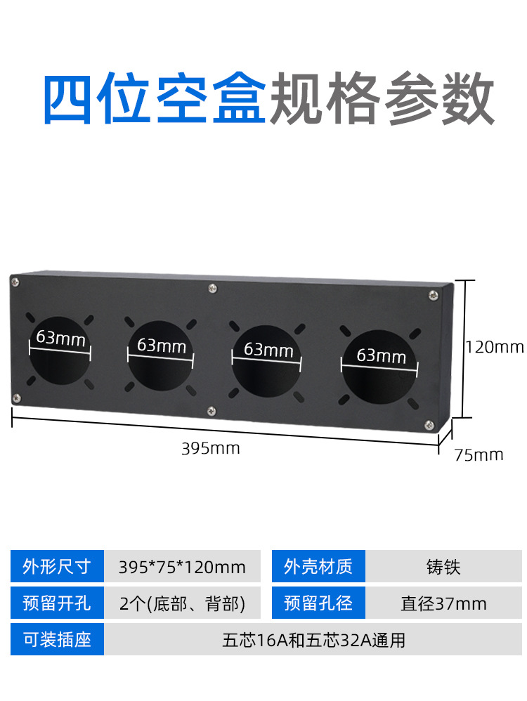 iron box two-bit 16a + one-bit 32a complete set with plug