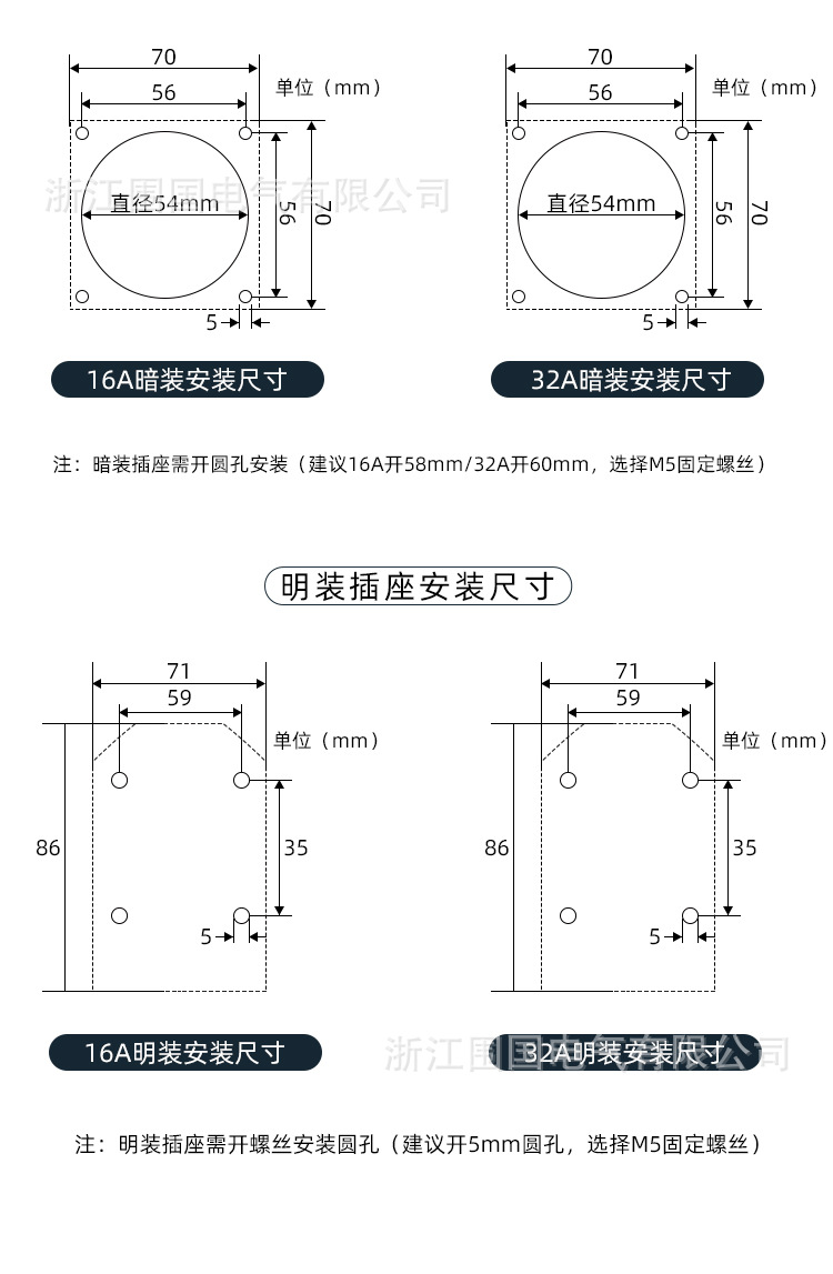 4-pin 32a surface-mounted socket