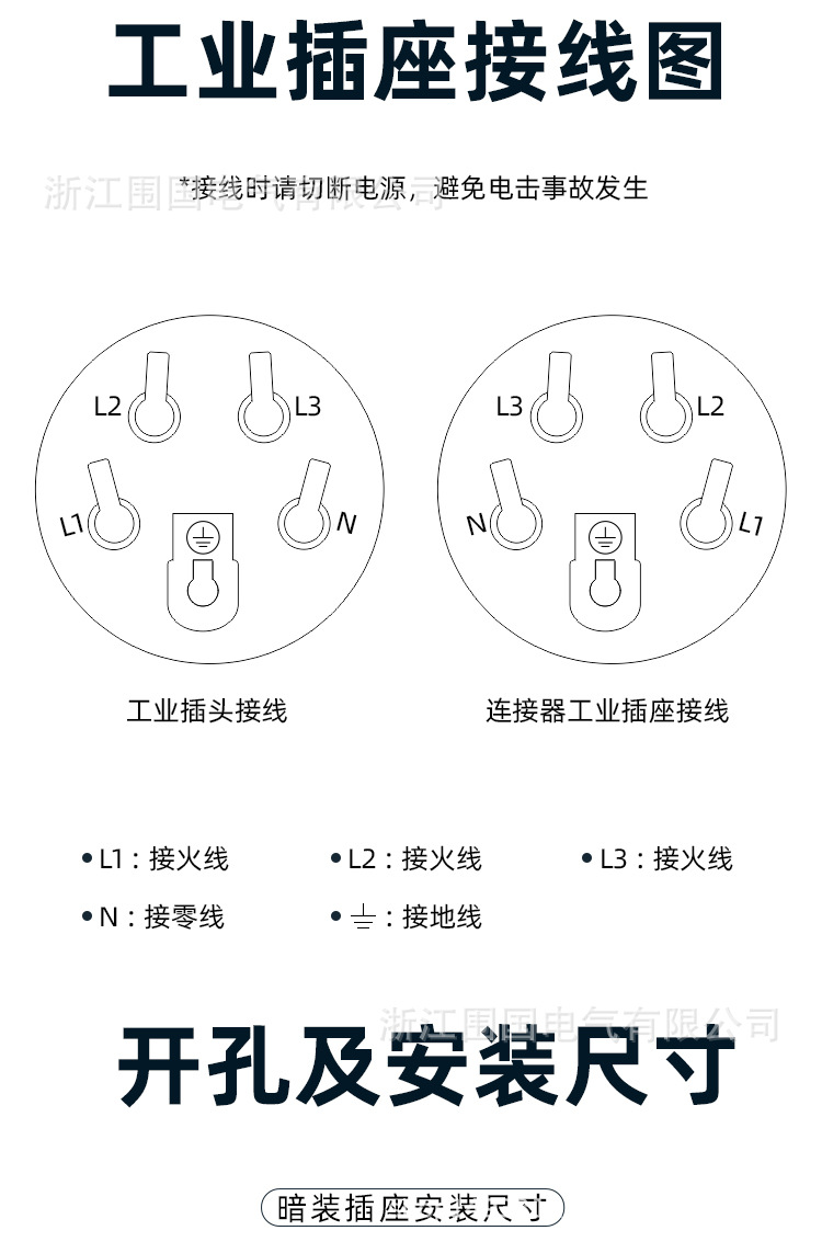 3-pole 63a flush-mounted socket