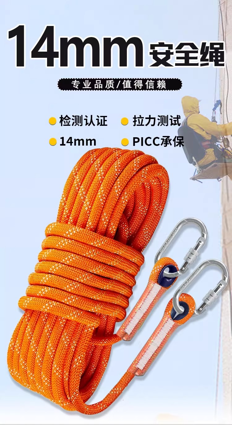 14mm rope, 50 meters long (load capacity: 3900 kg)