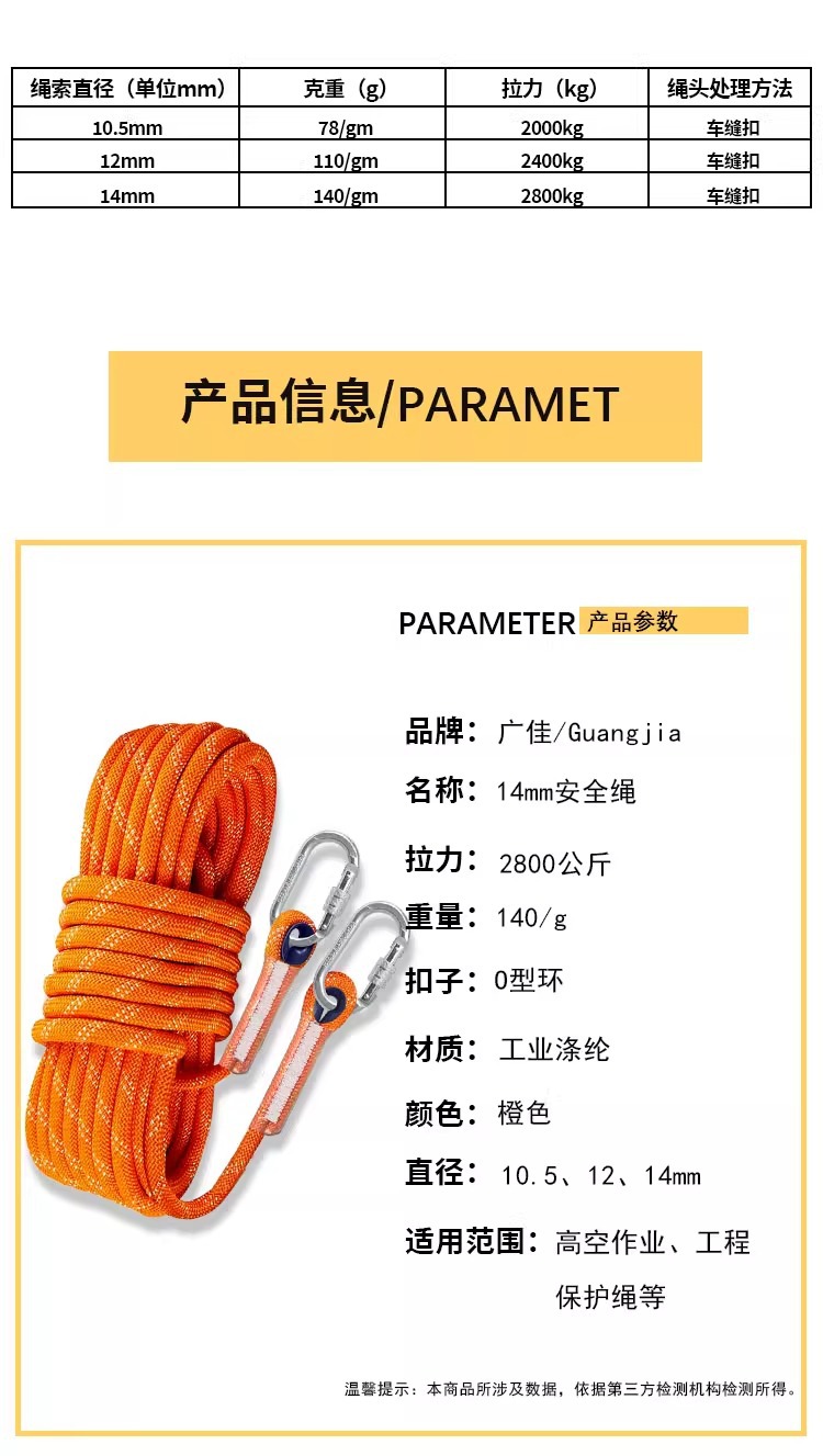 14mm rope, 10 meters long (load capacity: 3900 kg)