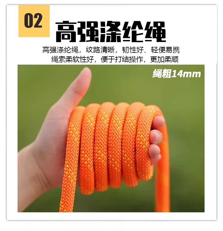 14mm rope, 20 meters long (load capacity: 3900 kg)