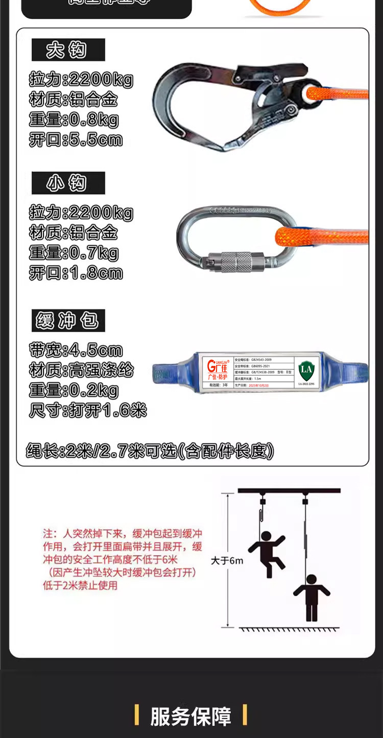 gj8210: single hook buffer pack 1.8 m + fence belt