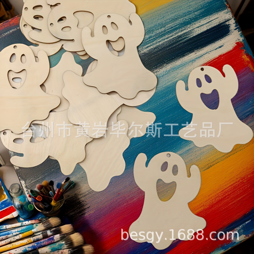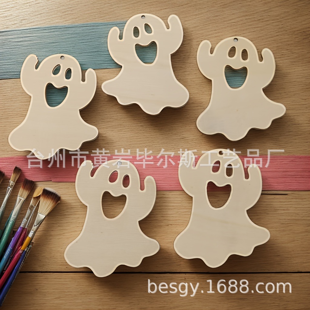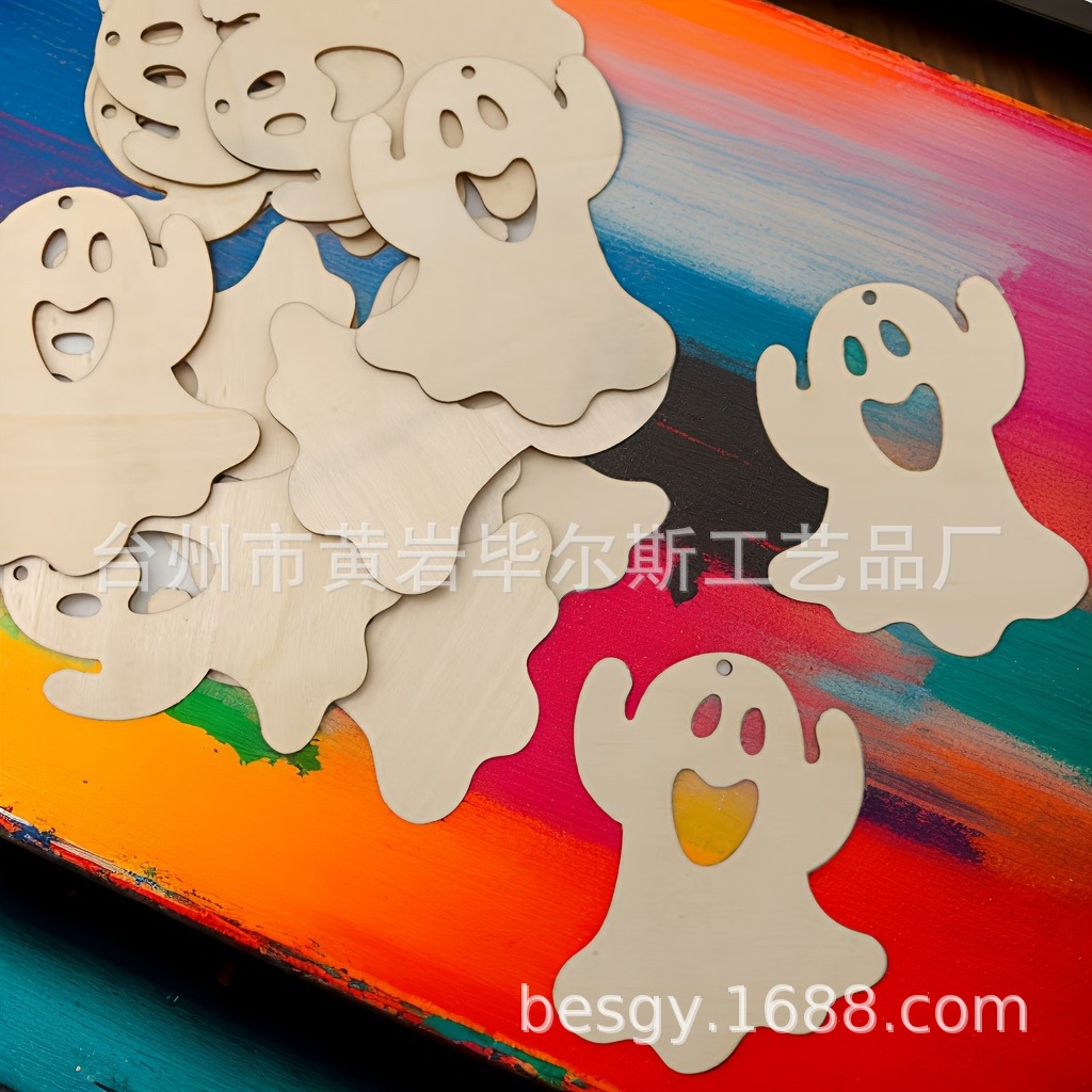 cross-border amazon bestseller ghost halloween wooden hanging ornaments party decorations multi-piece set halloween decorations