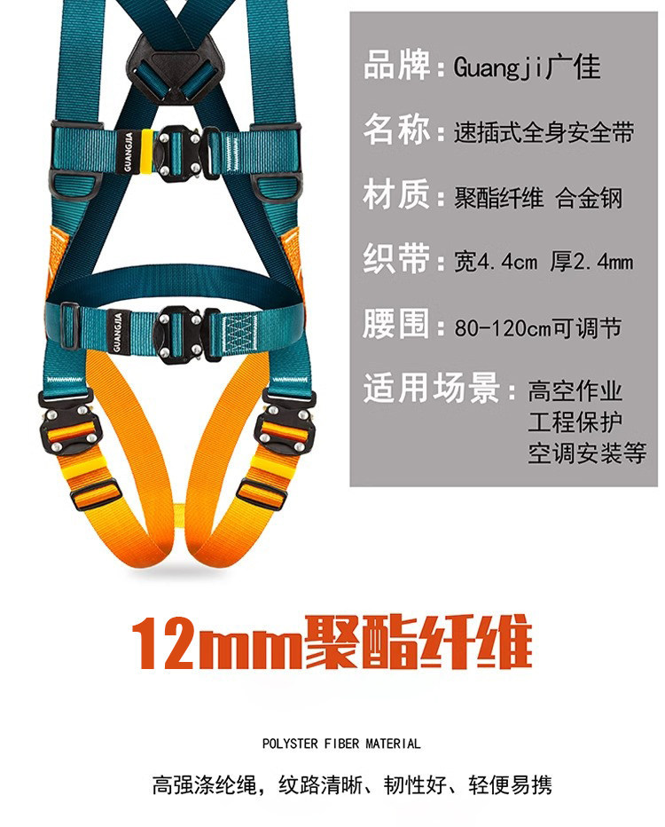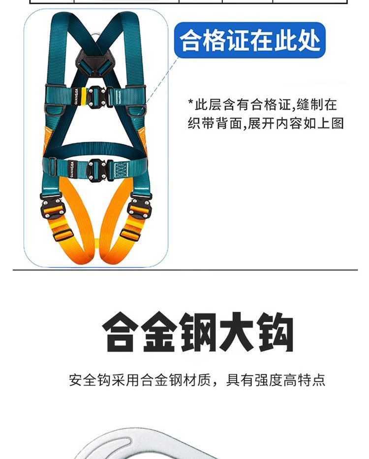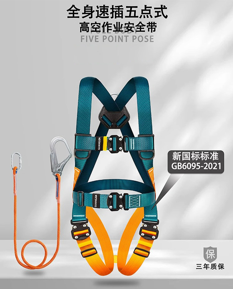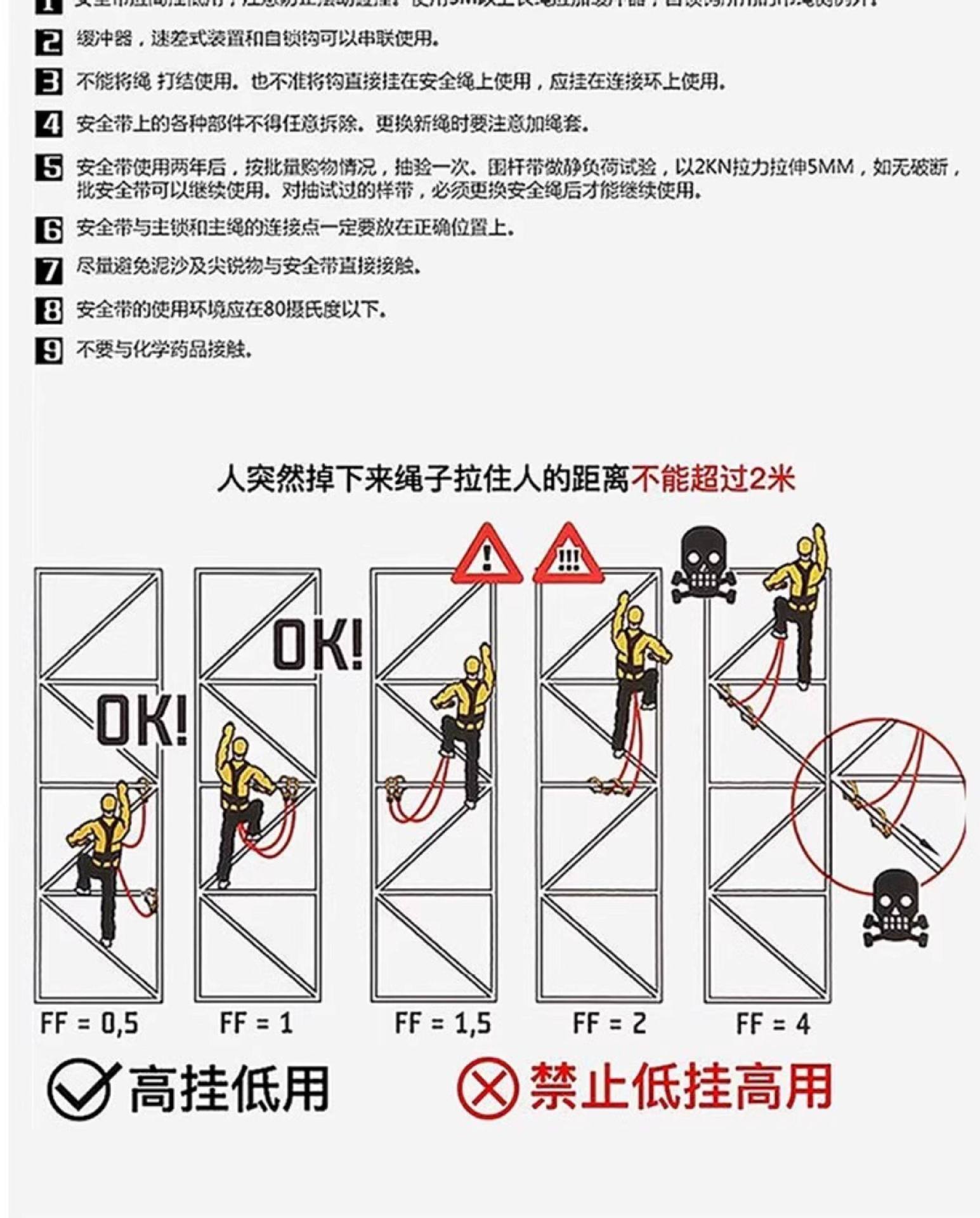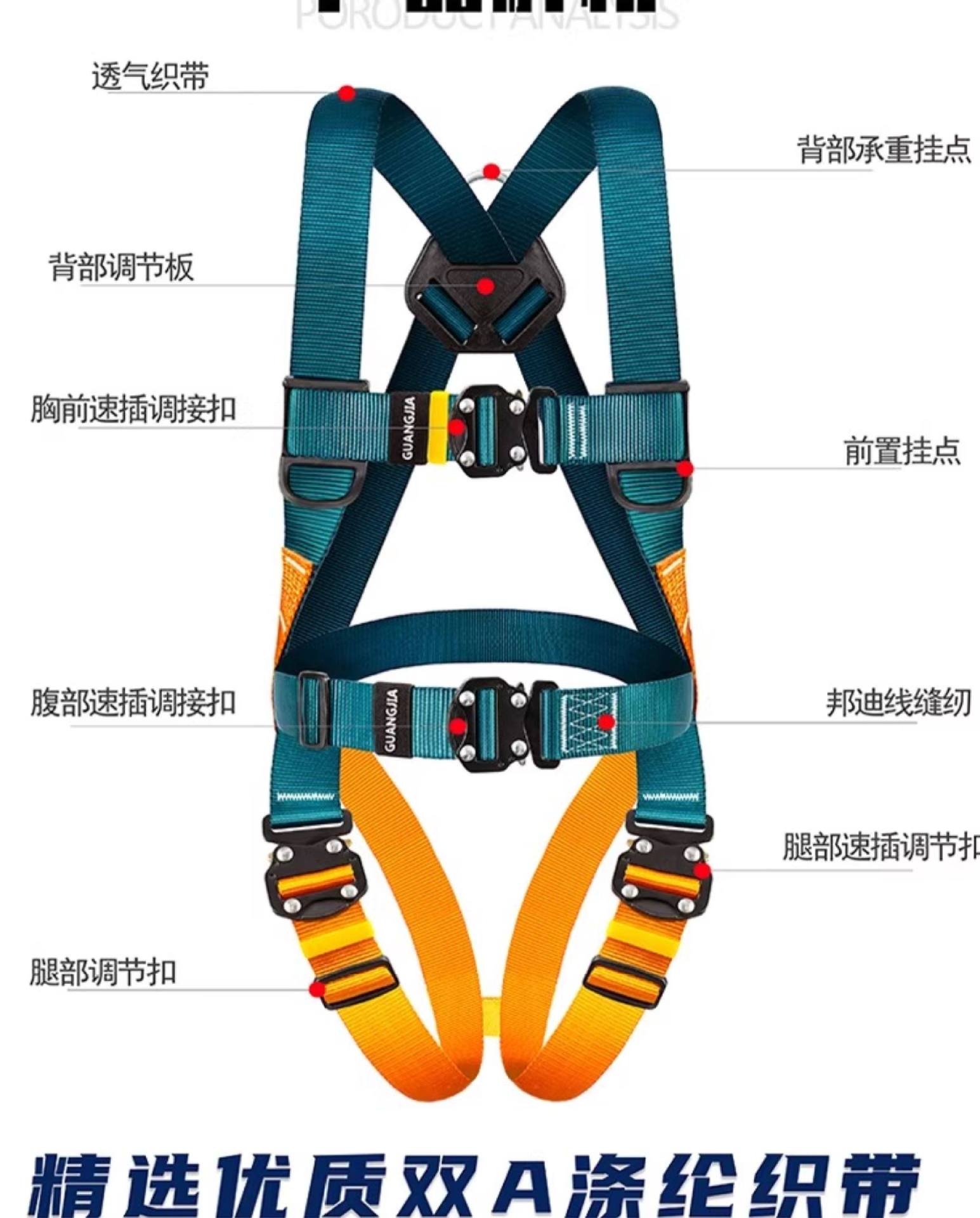 lightweight quick-release) harness + 2-meter double-large-hook strap with shock absorption