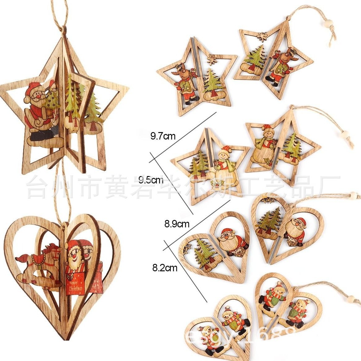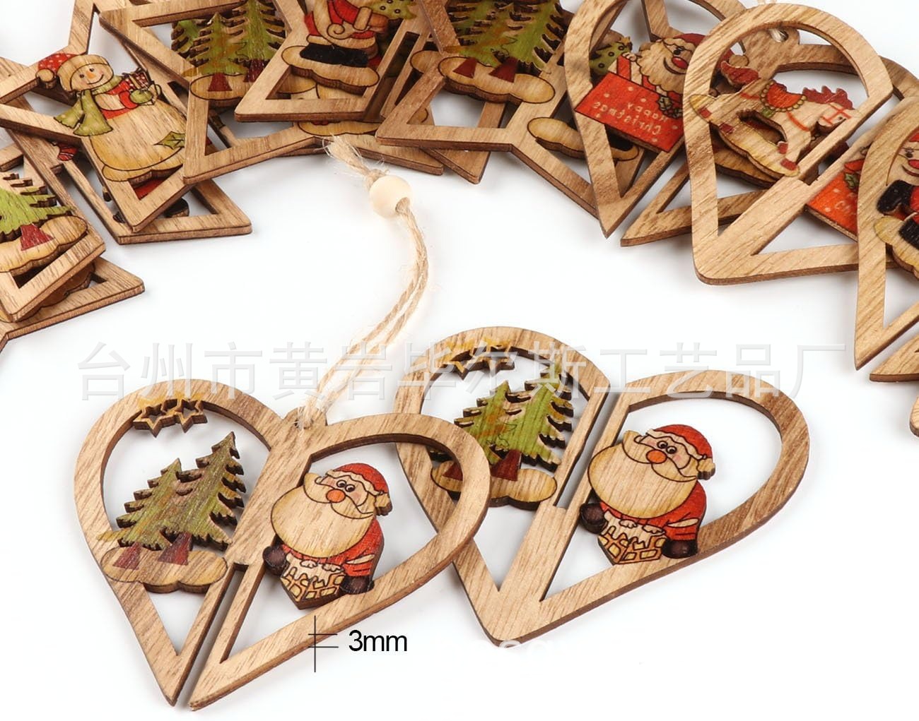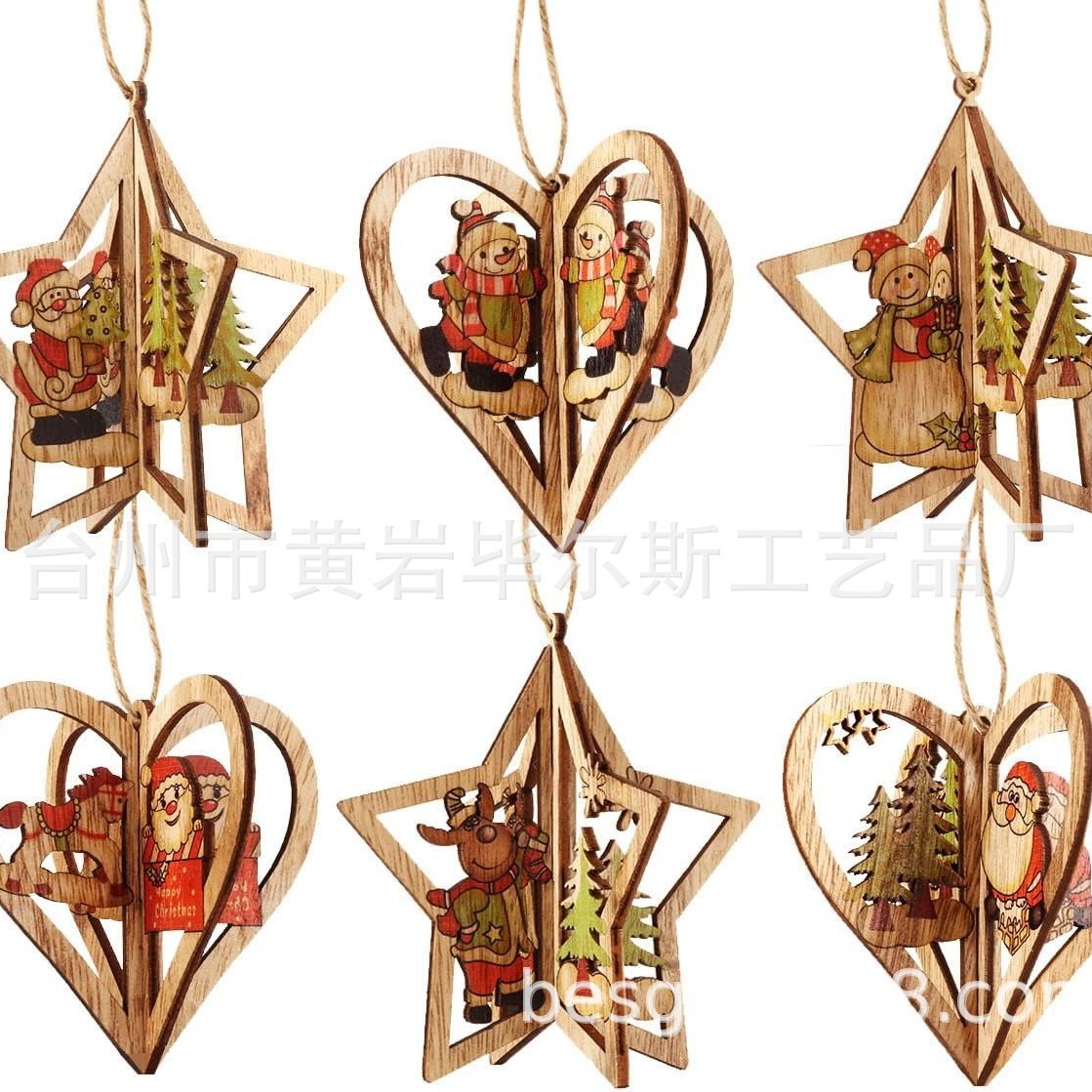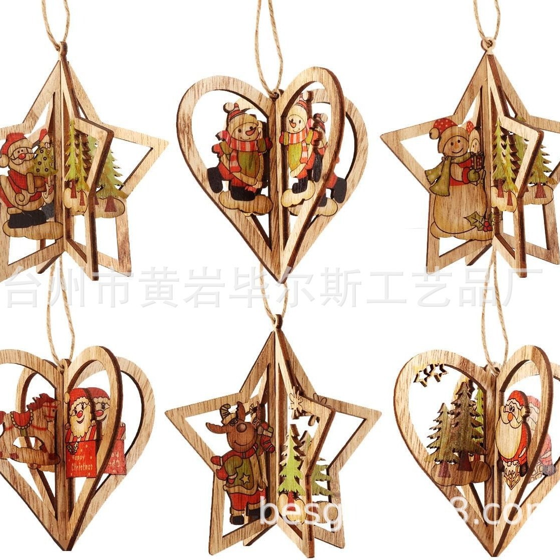 cross-border hot selling 3d christmas wooden pendant, set of 6, diy colorful printed santa claus and snowman pendant set