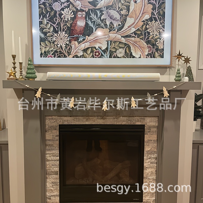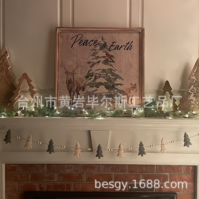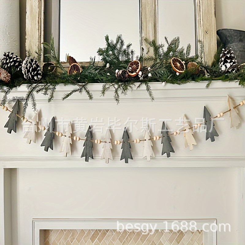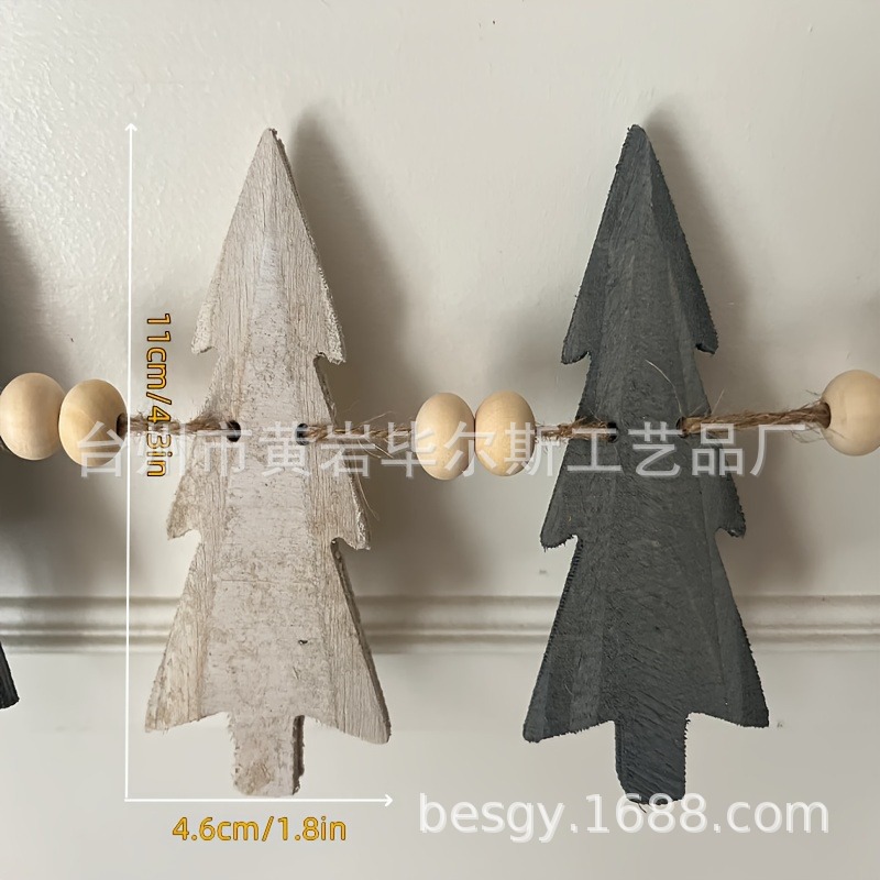 cross-border amazon hot christmas tree with wooden bead hanging decoration christmas wooden craftwork ornaments