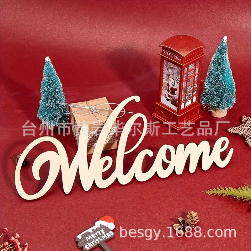 cross-border amazon bestseller welcome door sign laser-cut christmas holiday pendant factory wholesale with jute rope