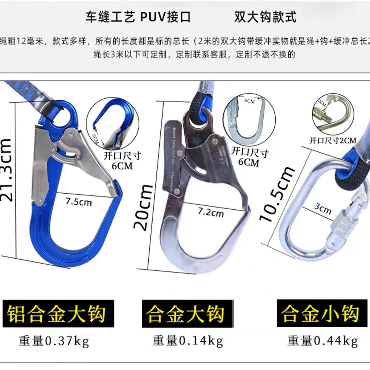 electrician standard type [fence belt]-buffer double big hooks [2 meters]