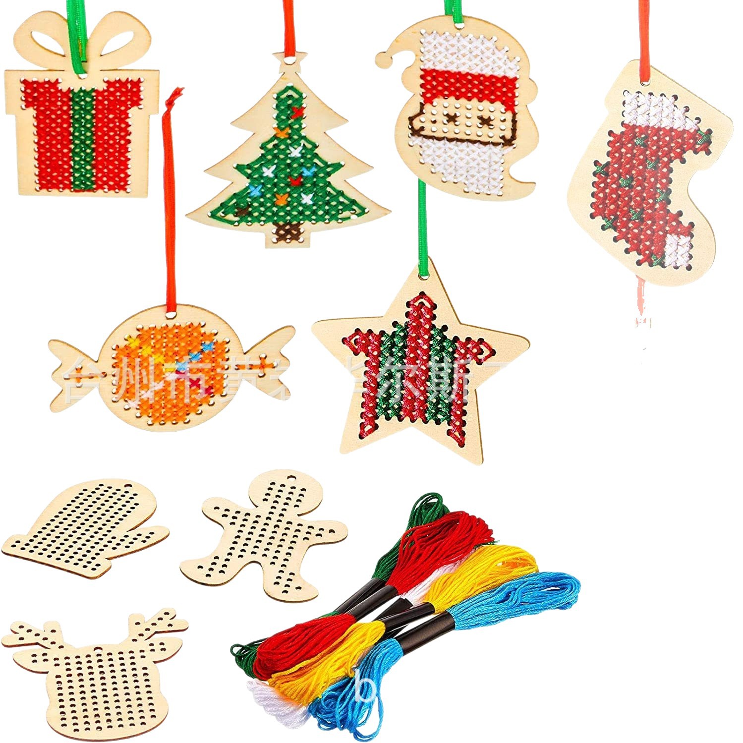 cross-border amazon hot selling wooden christmas cross embroidery kits children's handmade crafts christmas tree hanging