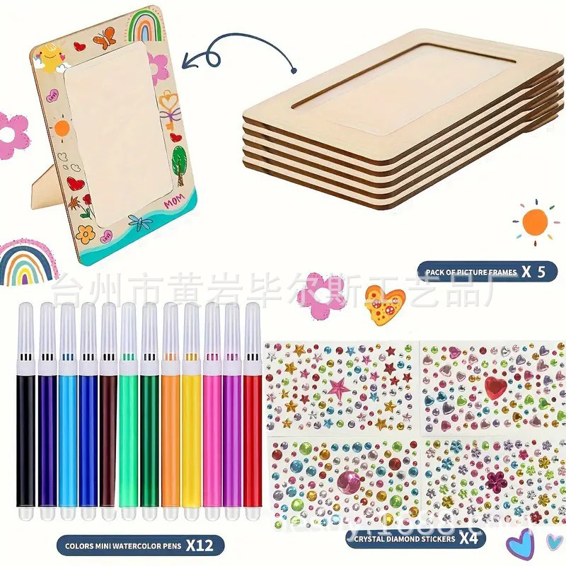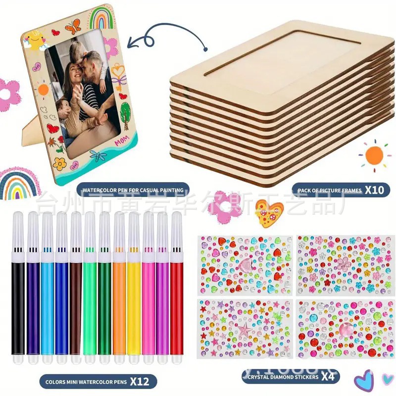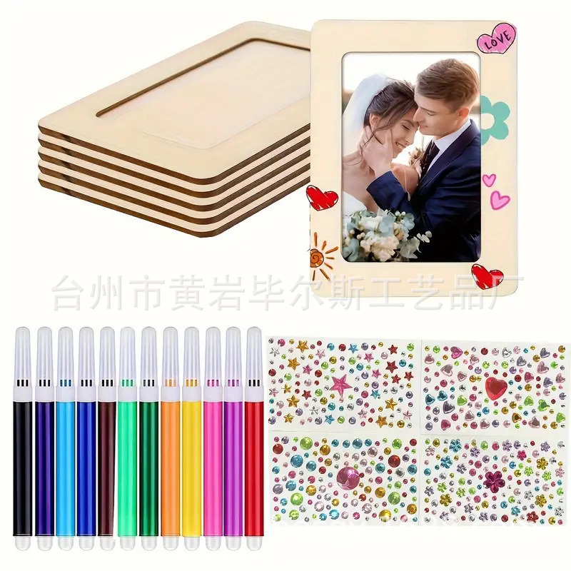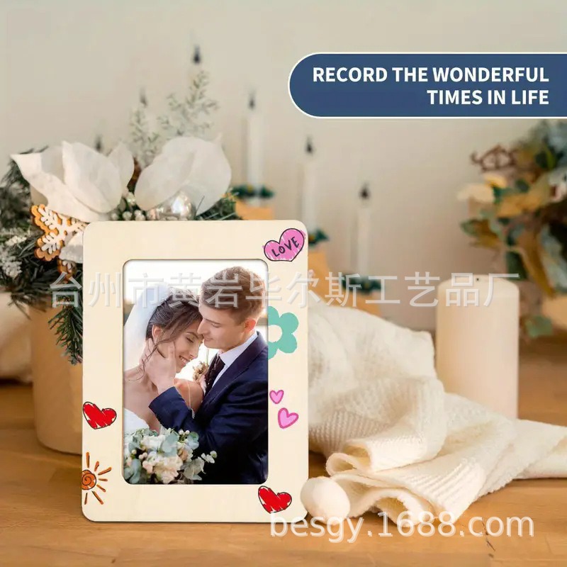 cross-border amazon bestseller diy doodle toy wooden craftwork handmade painting wooden board painting photo frame painting