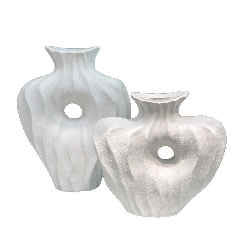 creative ceramic small vase dried flower artificial flower all-match ceramic ornaments creamy matte white artistic flower vessel
