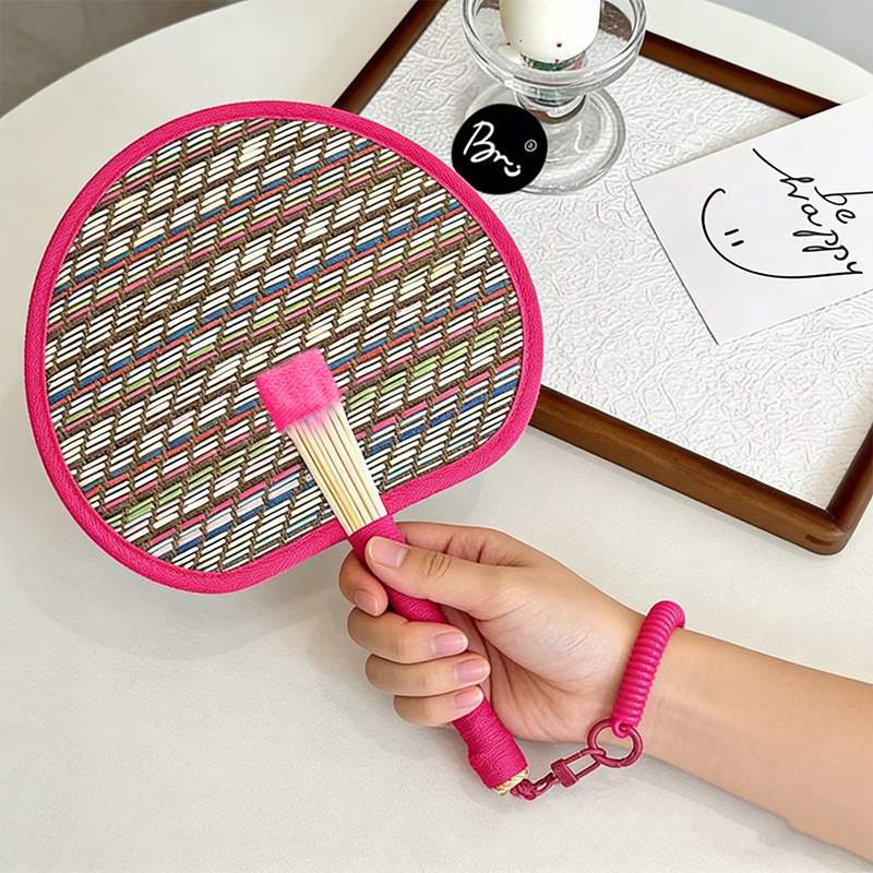 rose red woven cattail leaf fan-including lanyard