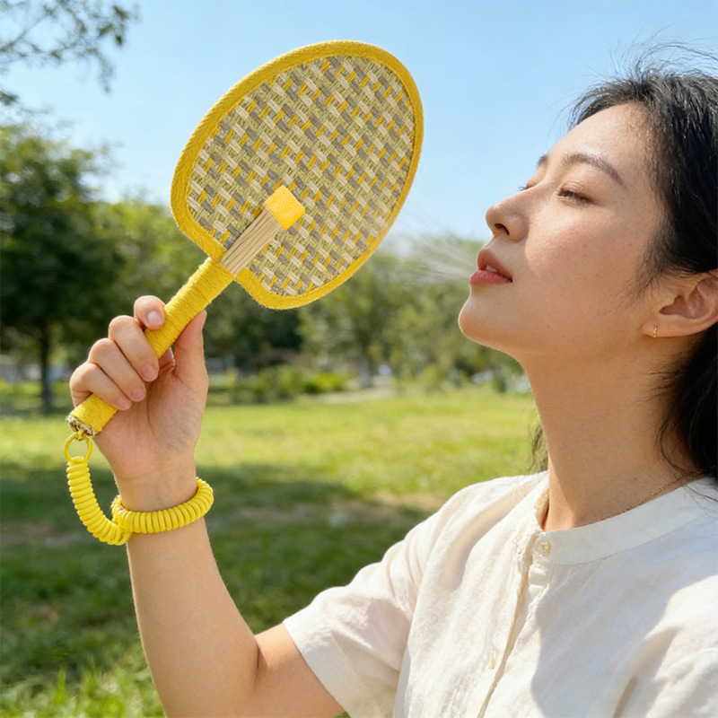 yellow woven cattail leaf fan-including lanyard