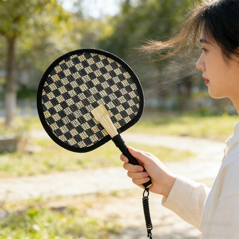 black woven cattail leaf fan-including lanyard