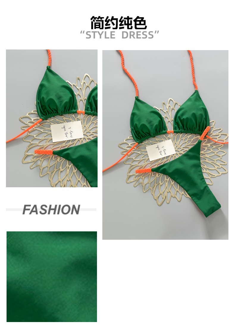 european and american hot three-point pure color bikini sexy braid rope senior vacation swimsuit cross-border foreign trade exclusive suit