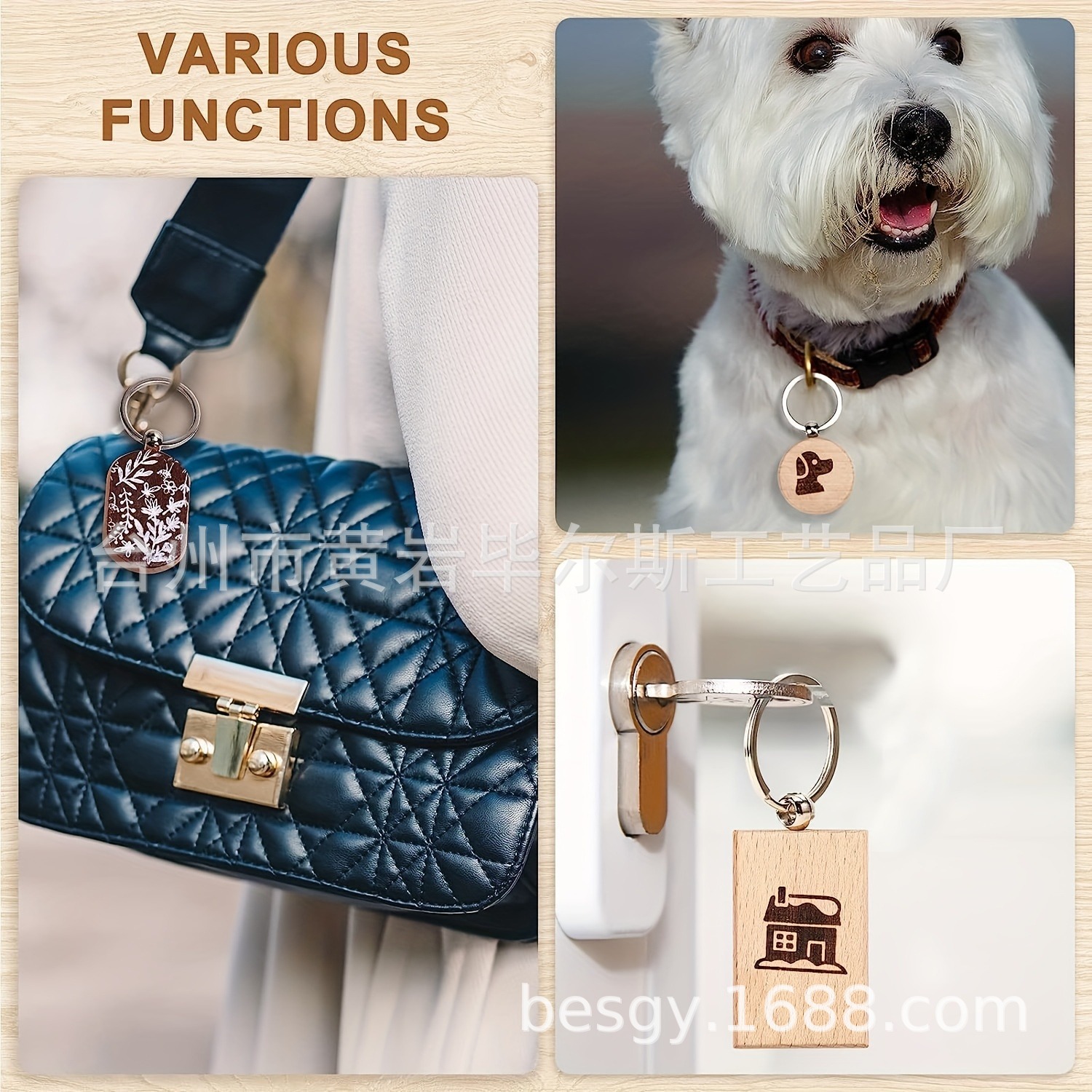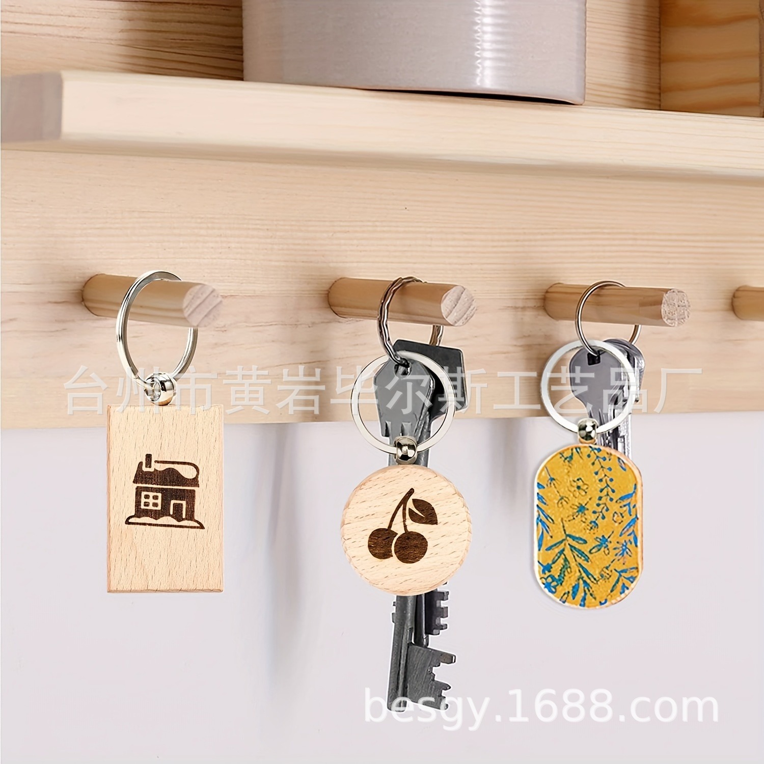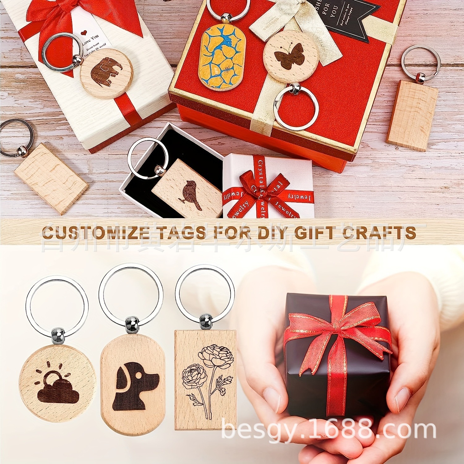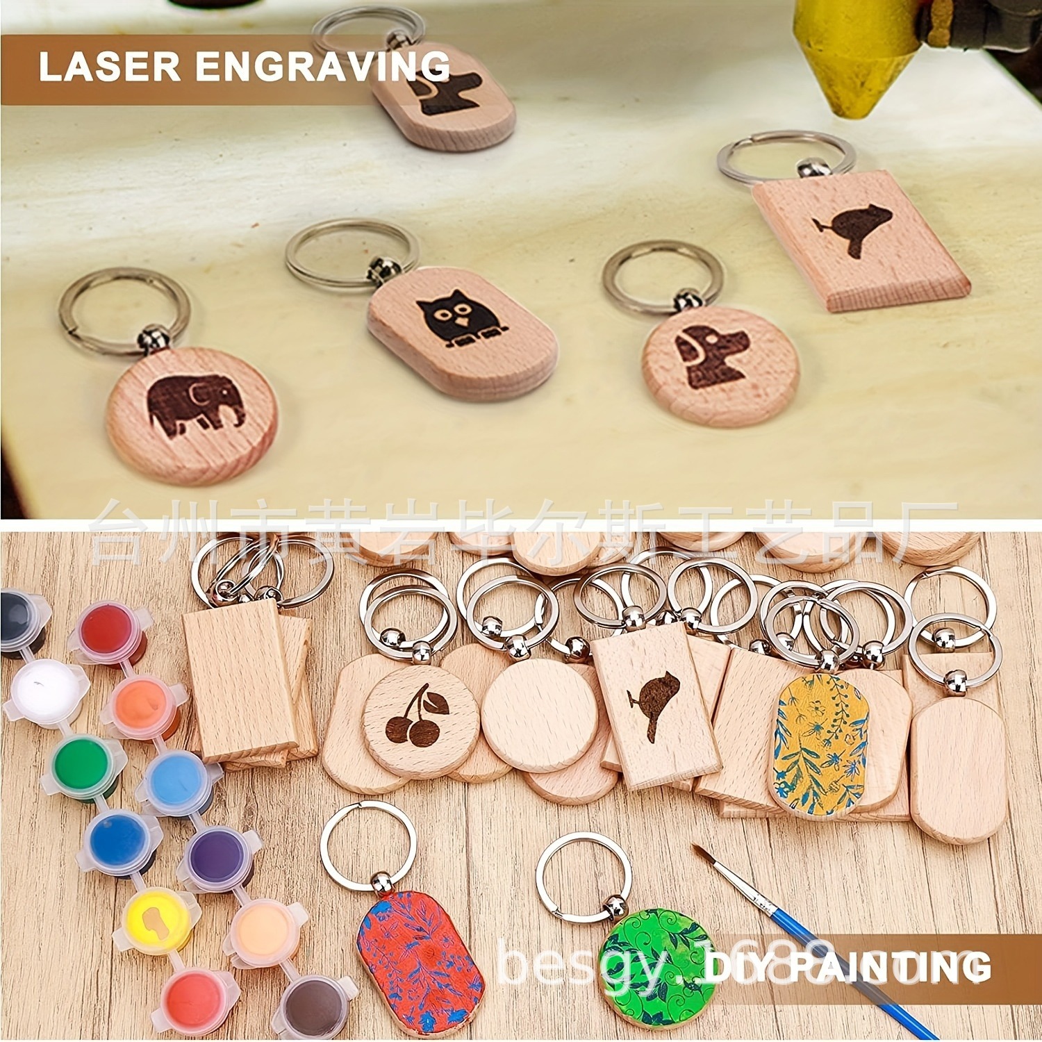 cross-border amazon hot sale 30 pieces beech keychain 3 shapes combination laser engraving round rectangle