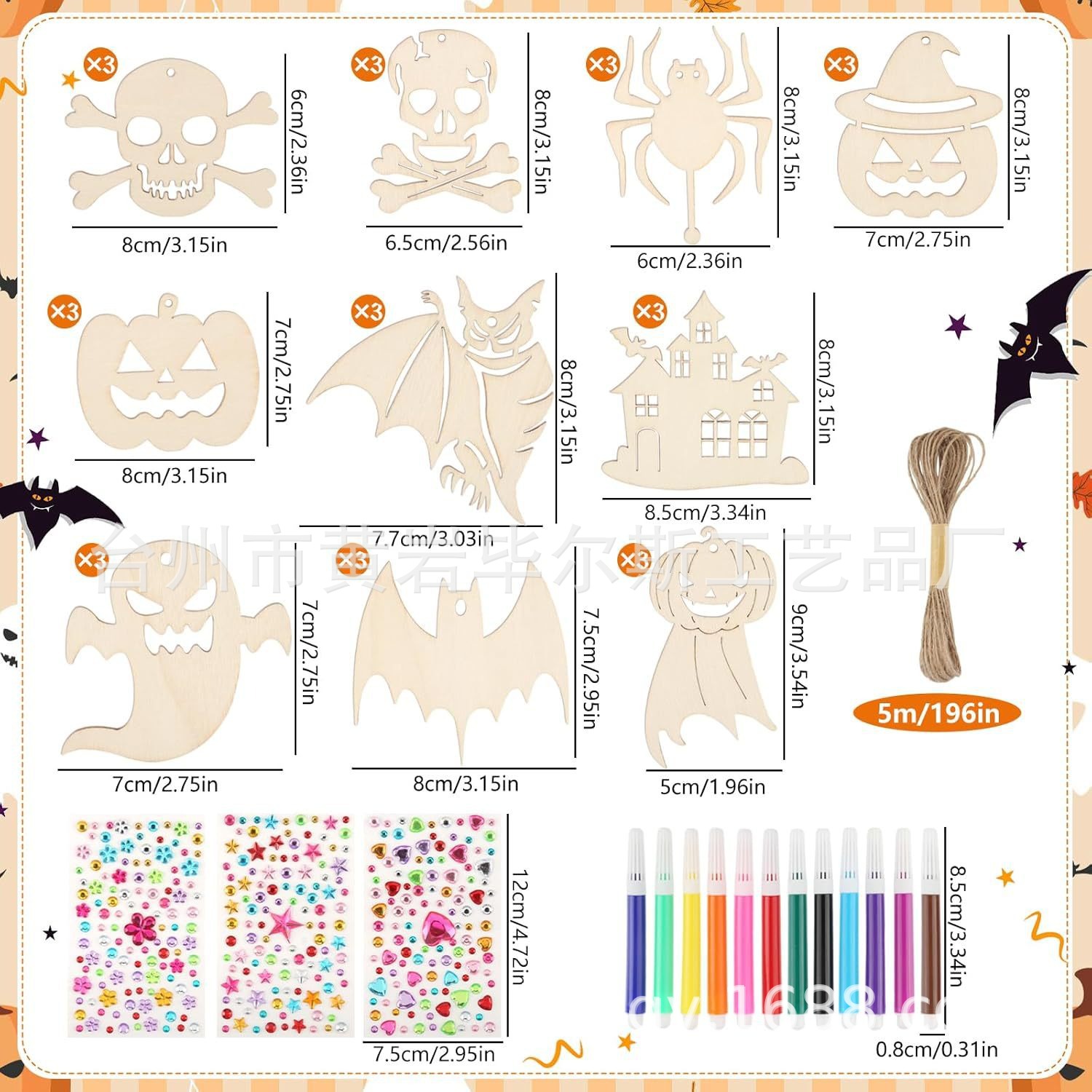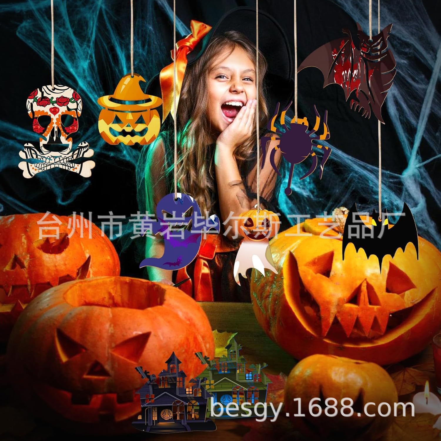 cross-border amazon bestseller: halloween skull, bat, and pumpkin hanging ornaments; halloween decorations for festive parties