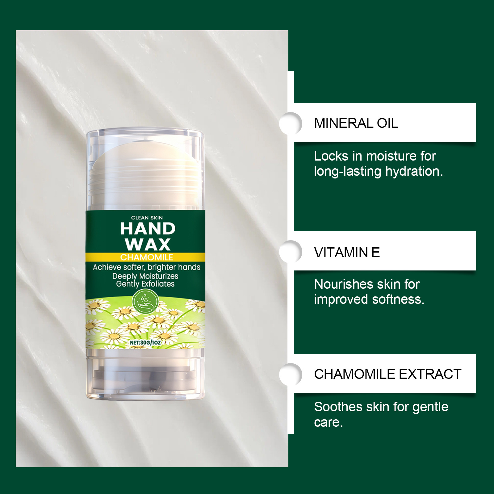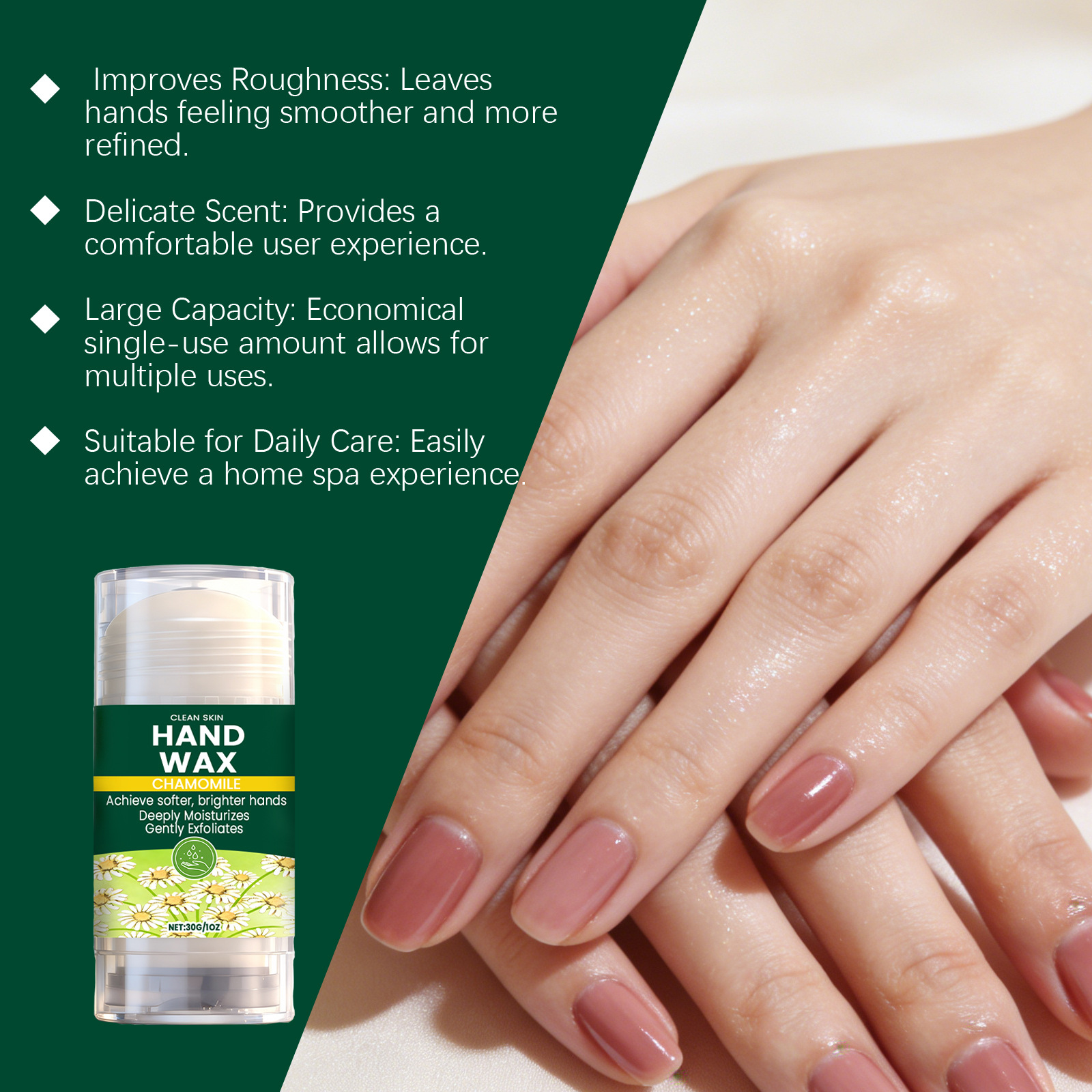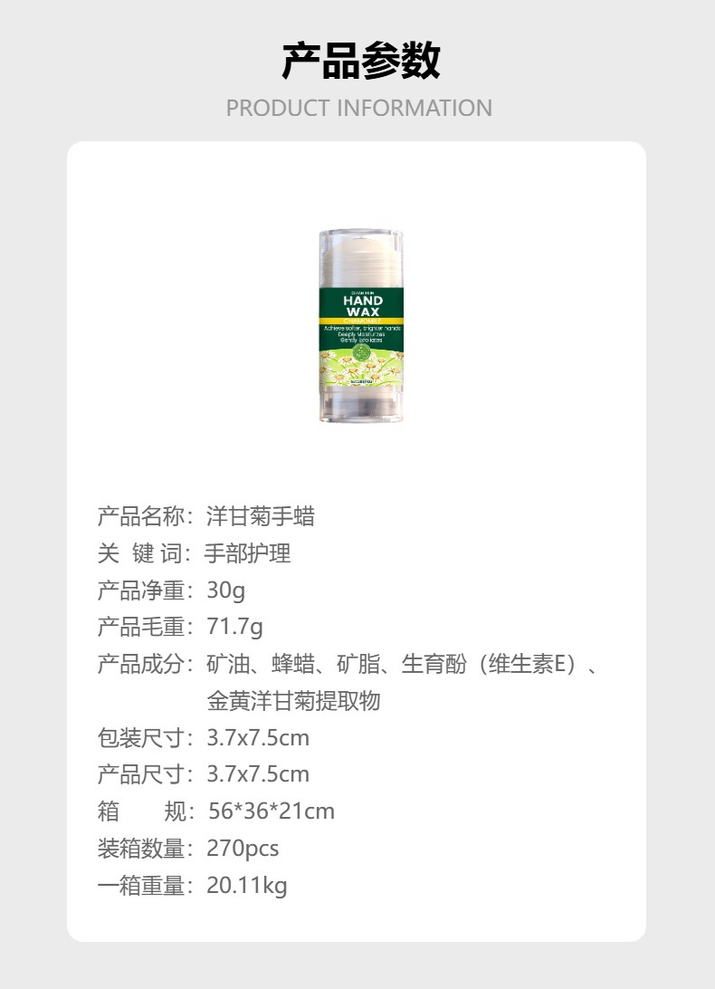 chamomile hand wax mask, gentle nourishing moisturizing, softens and easily absorbed, ideal for daily care of dry hand skin.