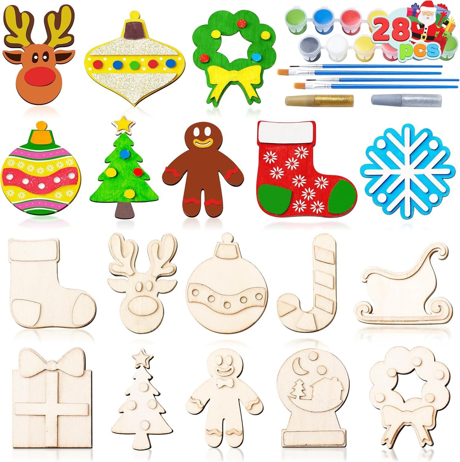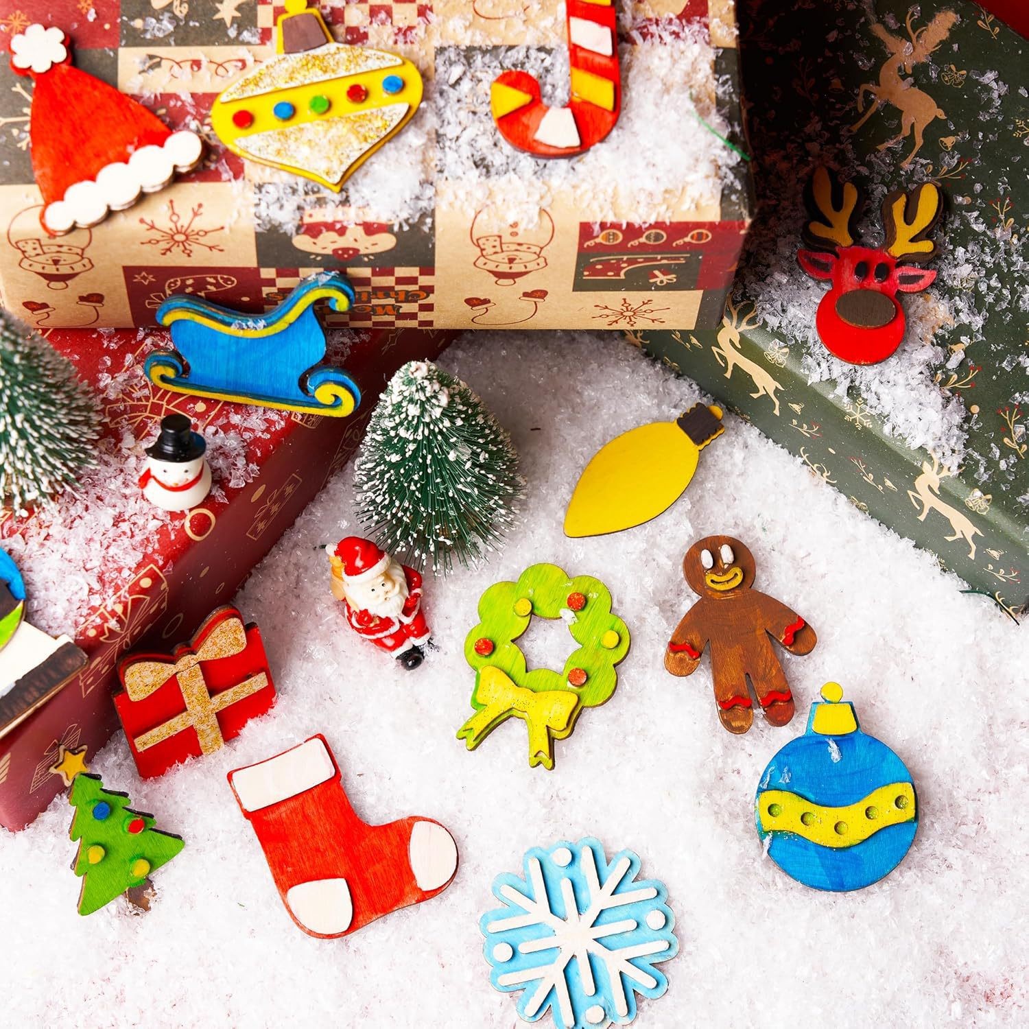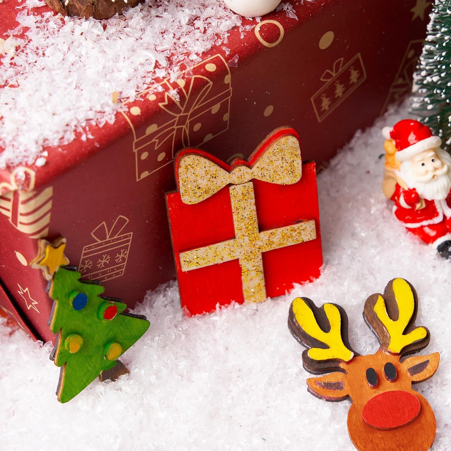 cartoon christmas snowman cross-border children's painting christmas diy re fridgerator magnets magnetic wood piece handcraft painting wooden craft