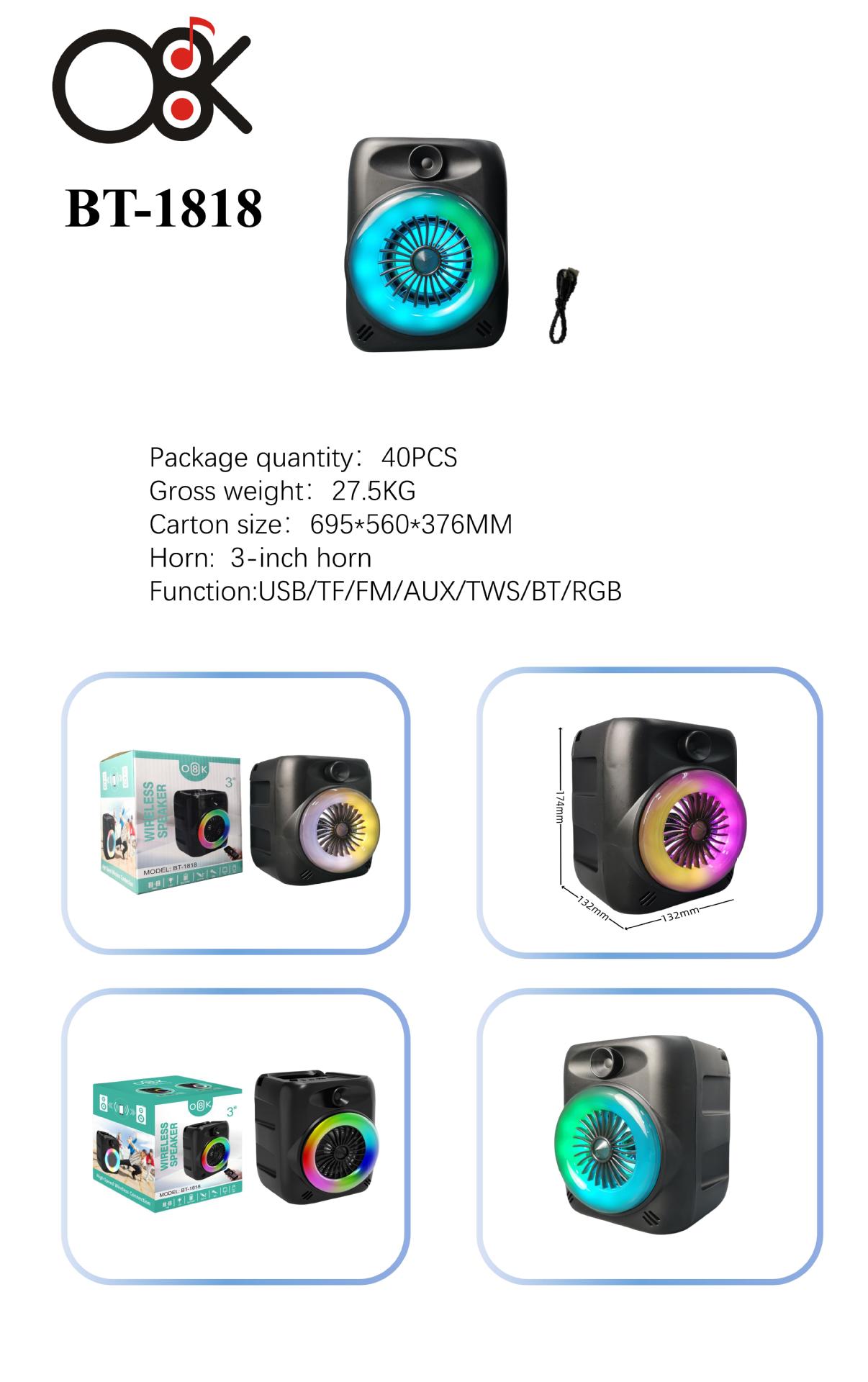cross-border bt-1818 bluetooth speaker subwoofer outdoor portable portable speaker 3-inch speaker with light mini speaker