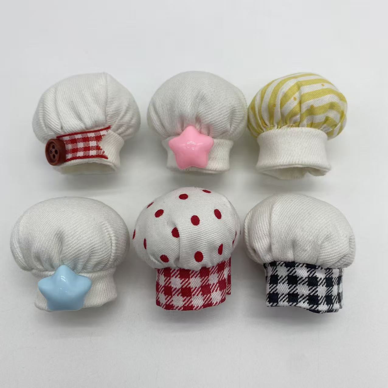 red and white plaid button chef cap