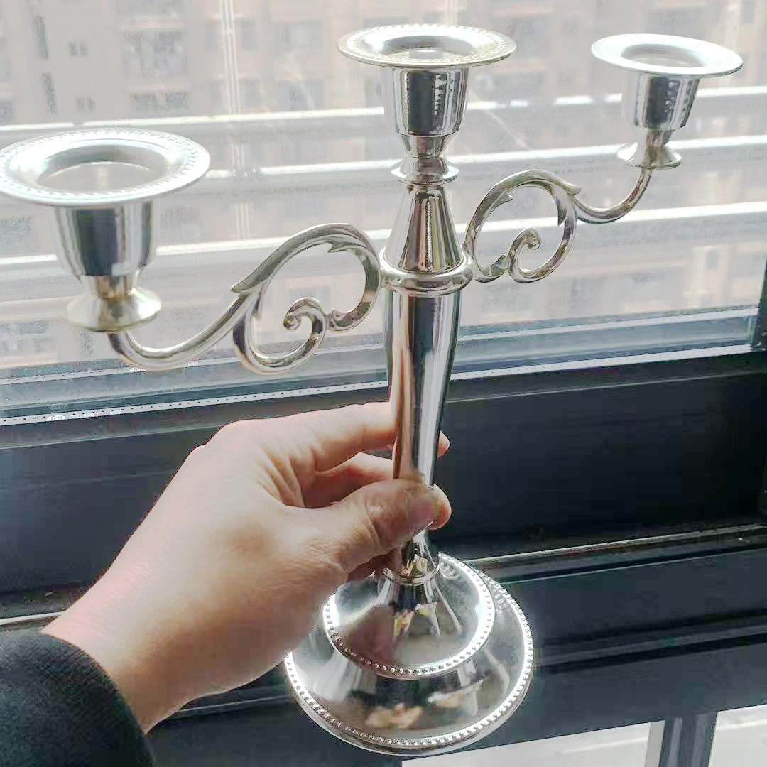 metal candle holder – silver, 3 heads