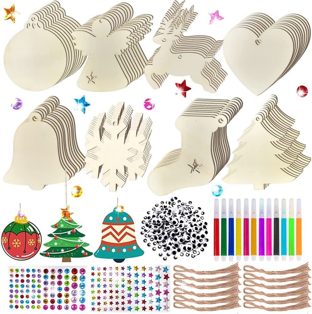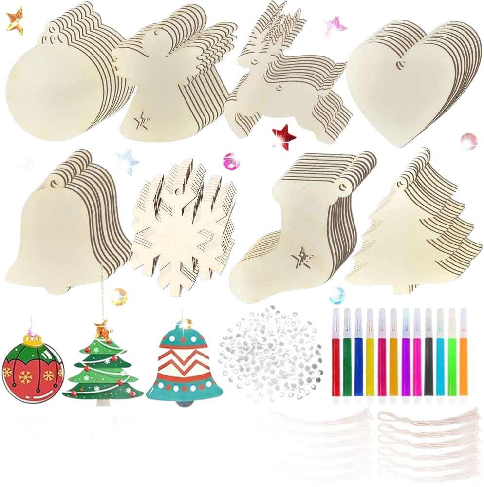 cross-border wooden diy christmas craft kit: christmas tree decorations, paintable pendants, and ornaments — complete christmas tree supplies set