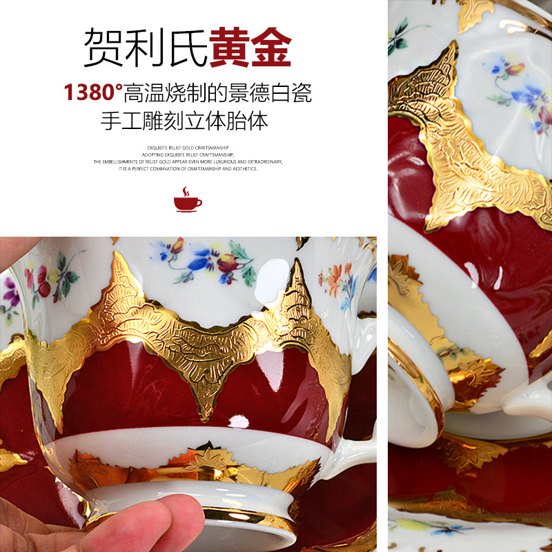 one cup and one saucer [all-flower gold red] gift set