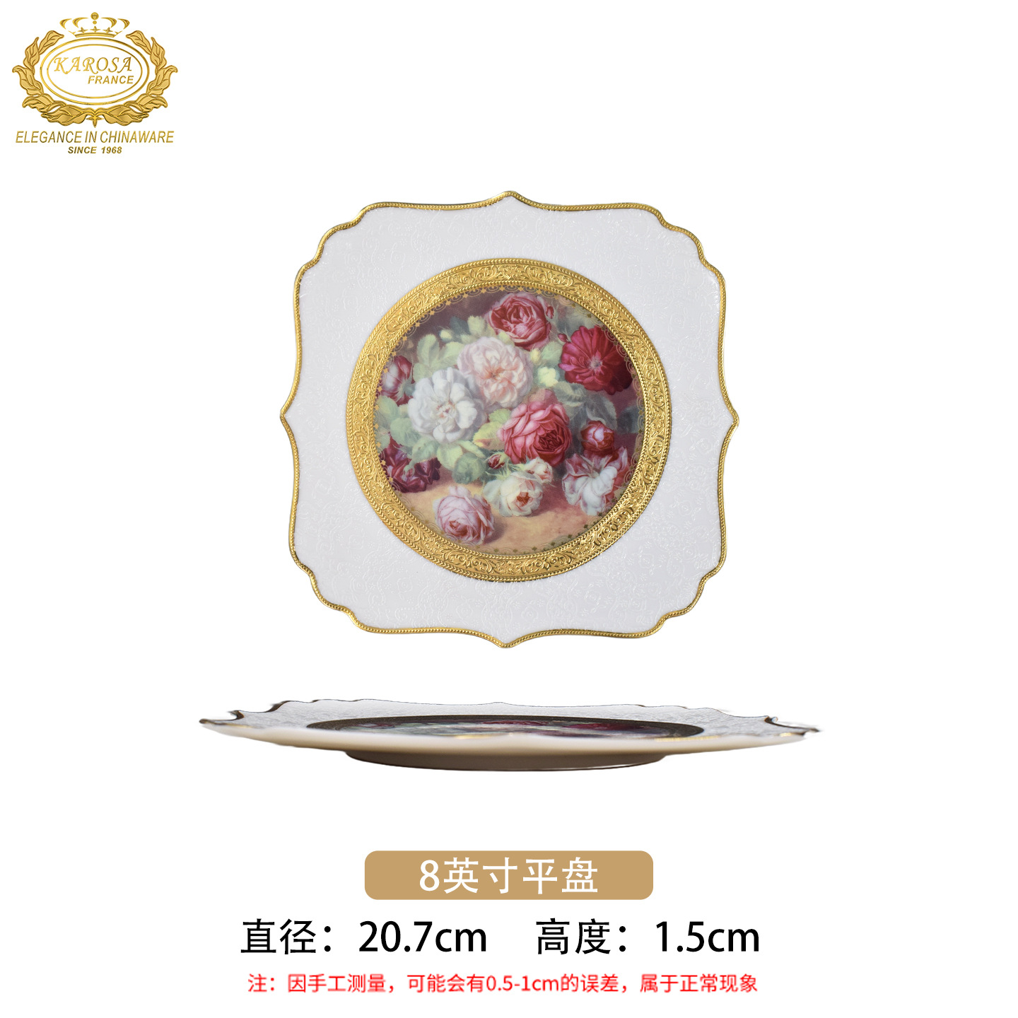 8-inch deep dinner plate [rose about] 1 head