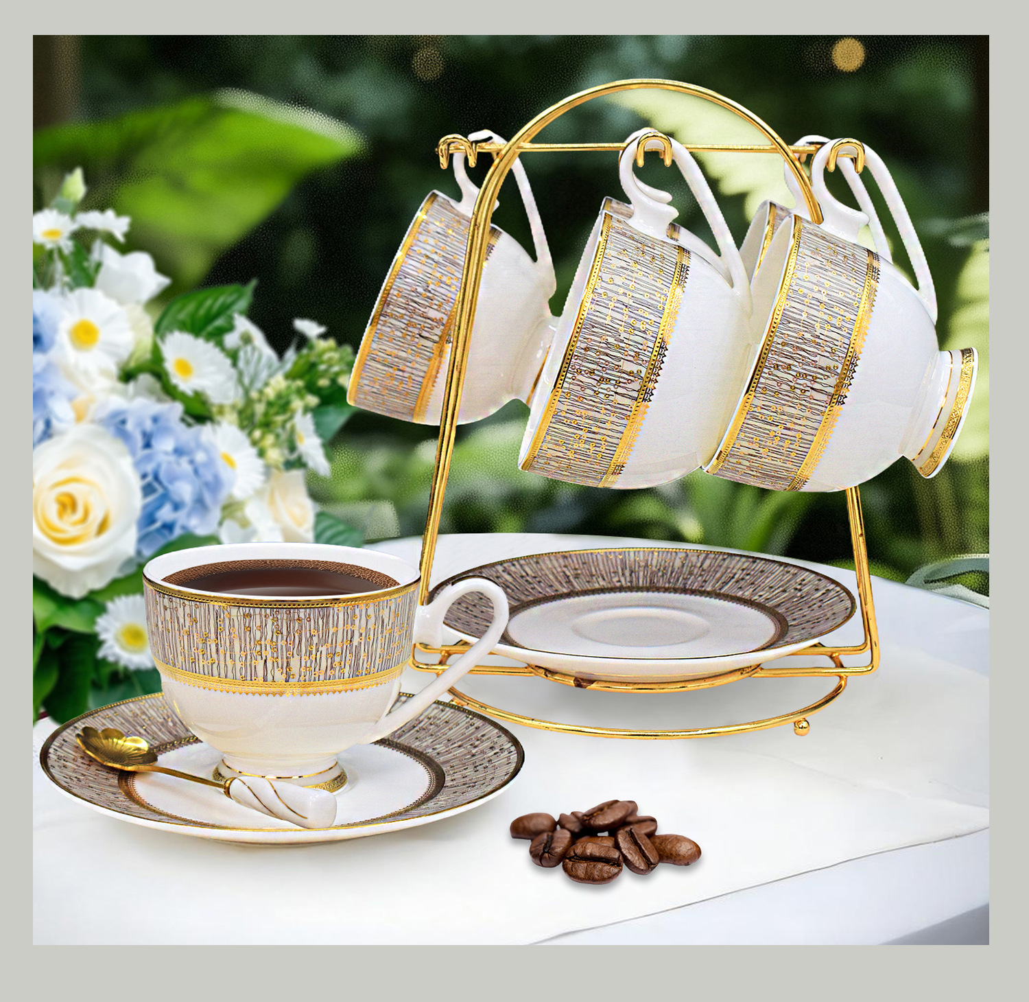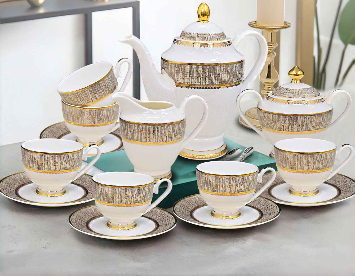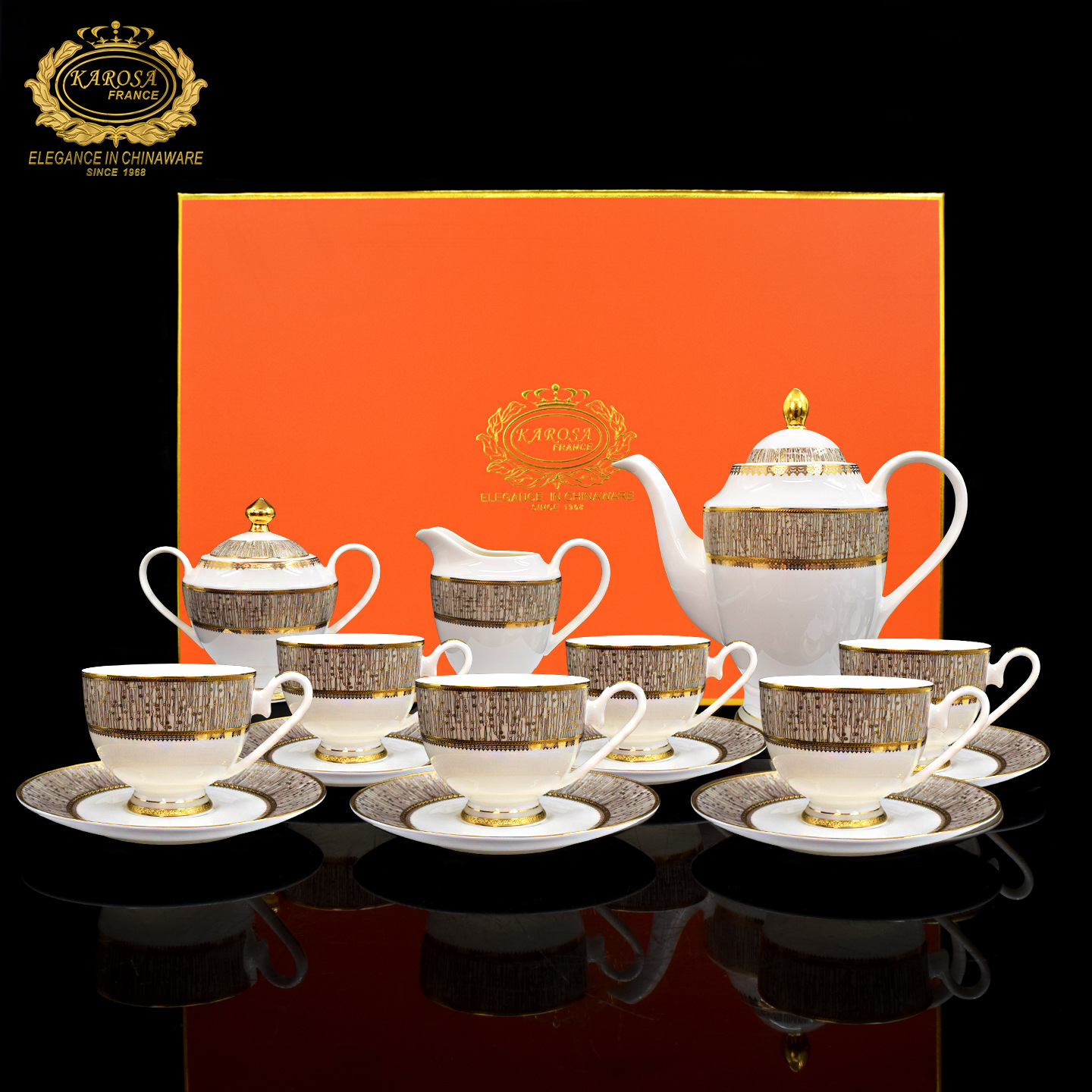six cups and six dishes, 17-piece set [dubai royal] gift box