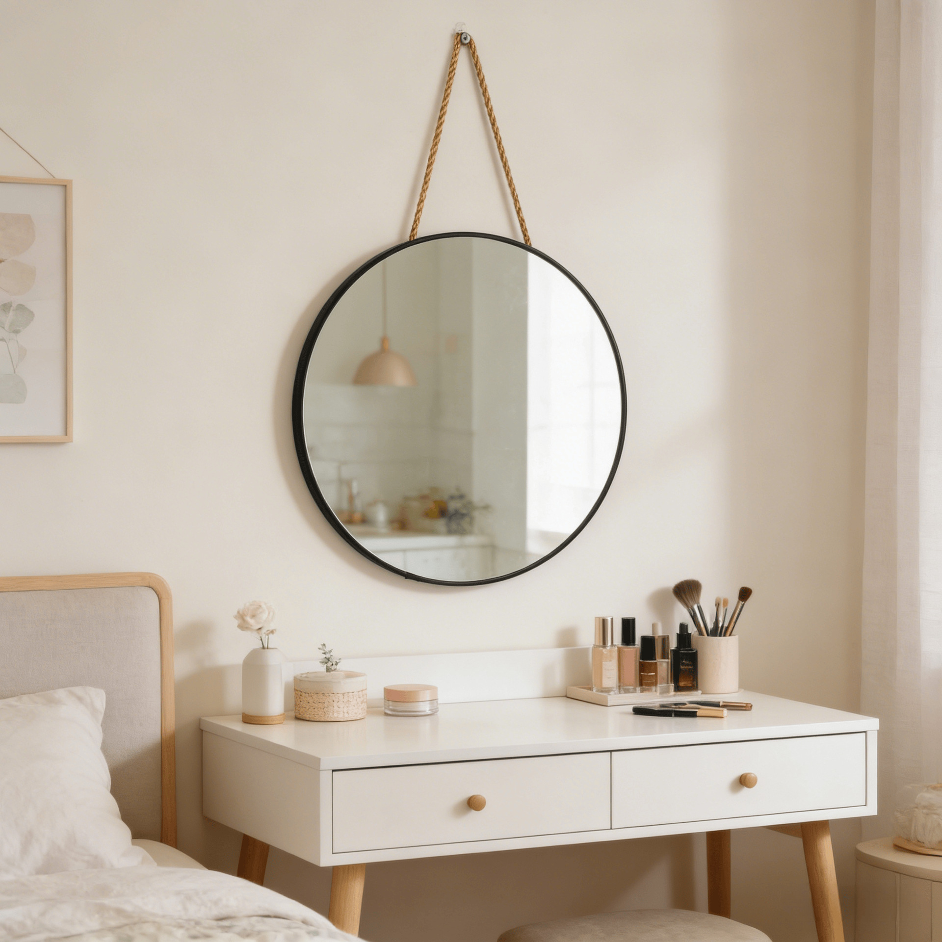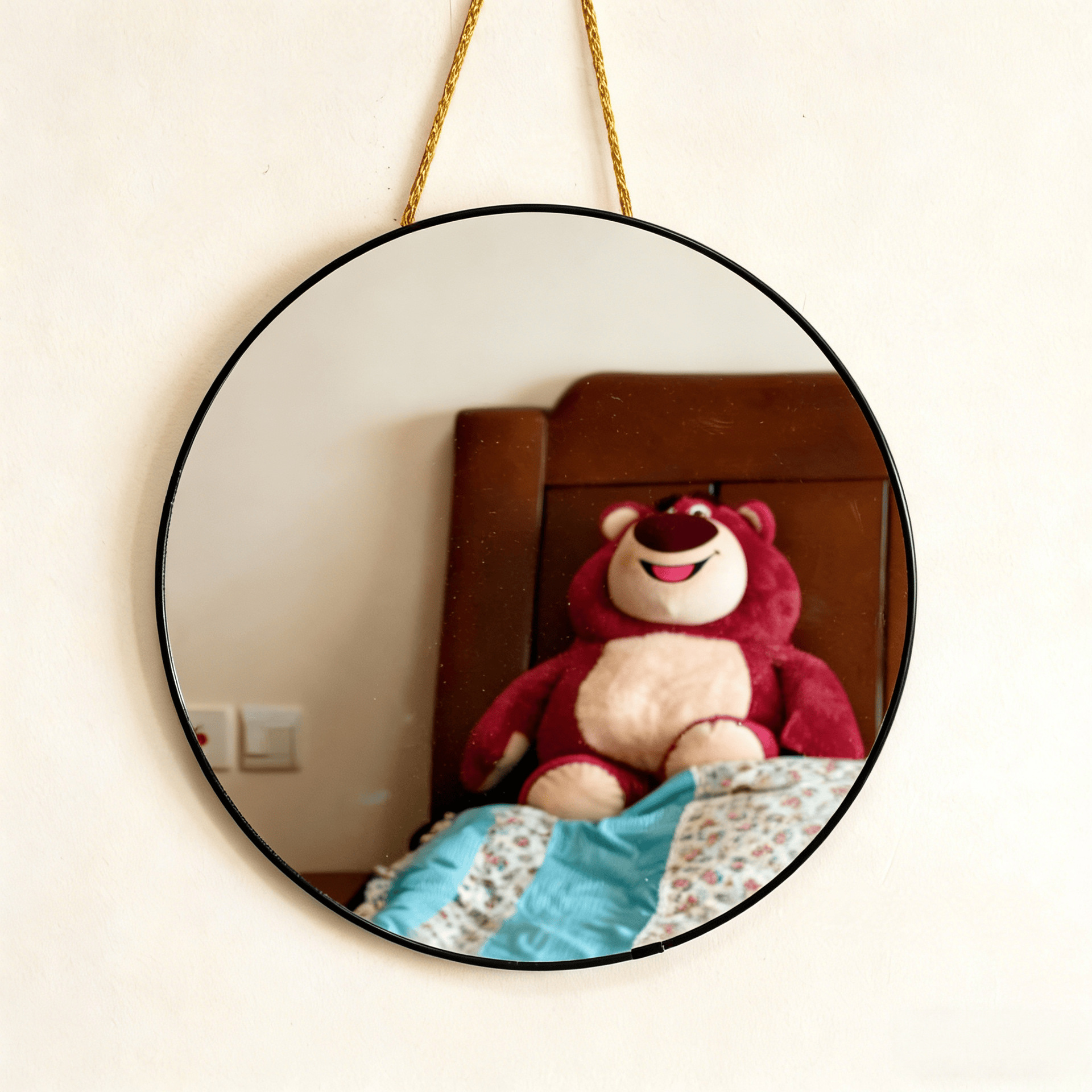 Mirror with a rope for hanging on the wall, suitable for student dormitory, home dressing room, and bedroom. No drilling required for hanging on the wall.