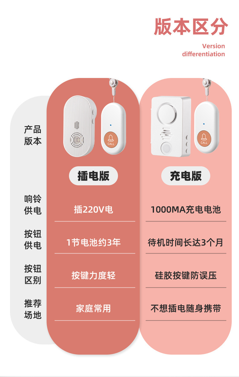 805 charging 1 button +1 bell ring with lanyard