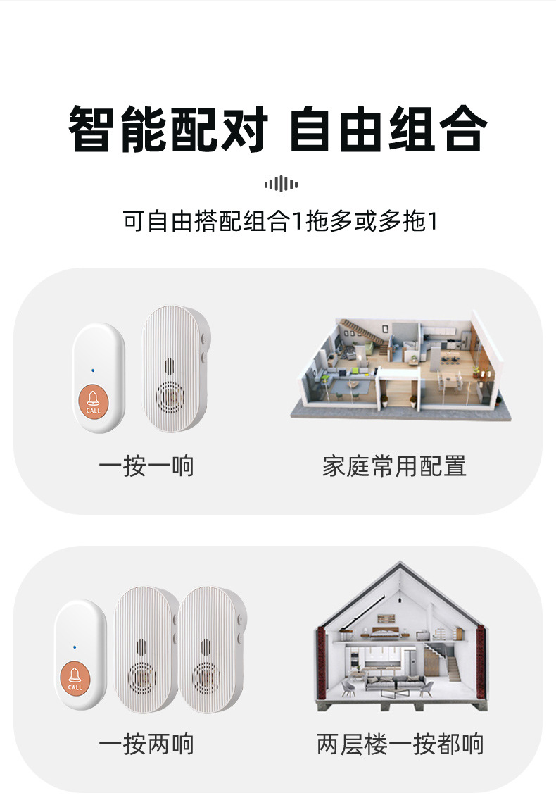808 american standard plug-in 1 button +1 bell ring with lanyard
