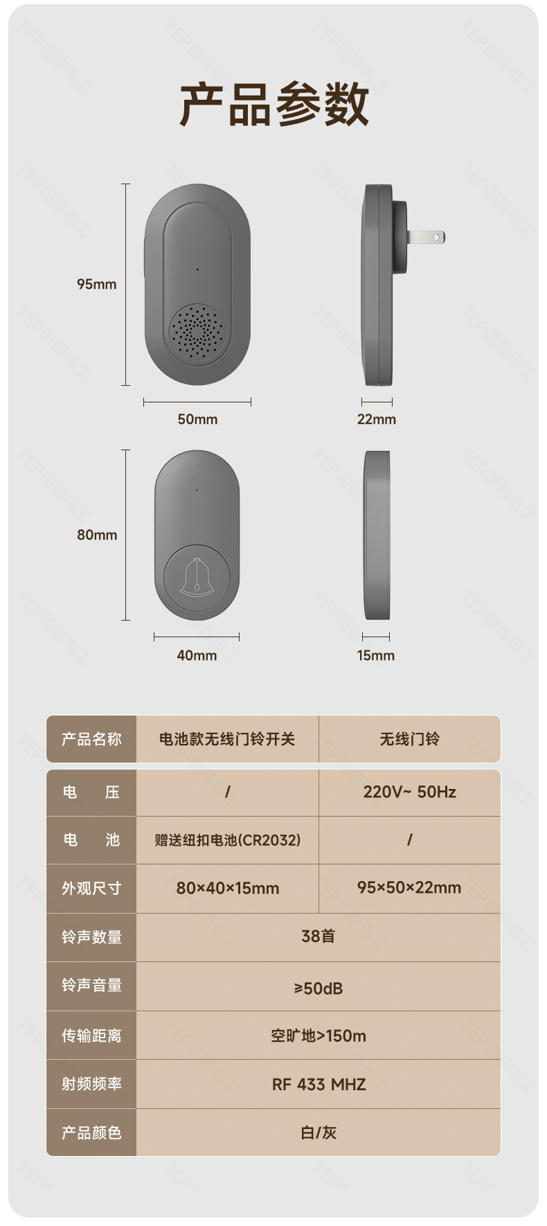 battery white (1 buzzer +1 remote control)