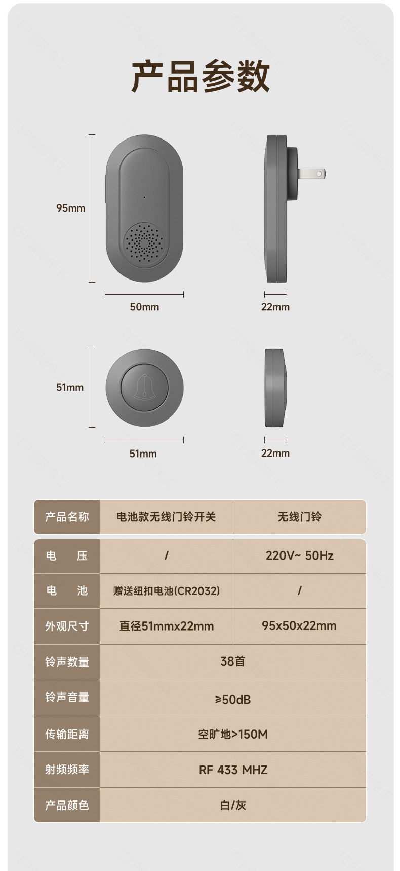 rechargeable white (1 buzzer +1 remote control)