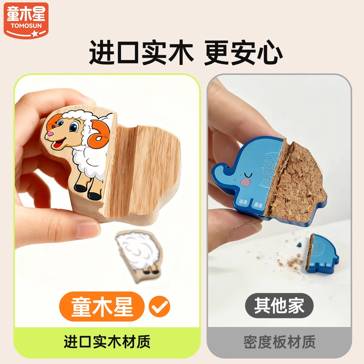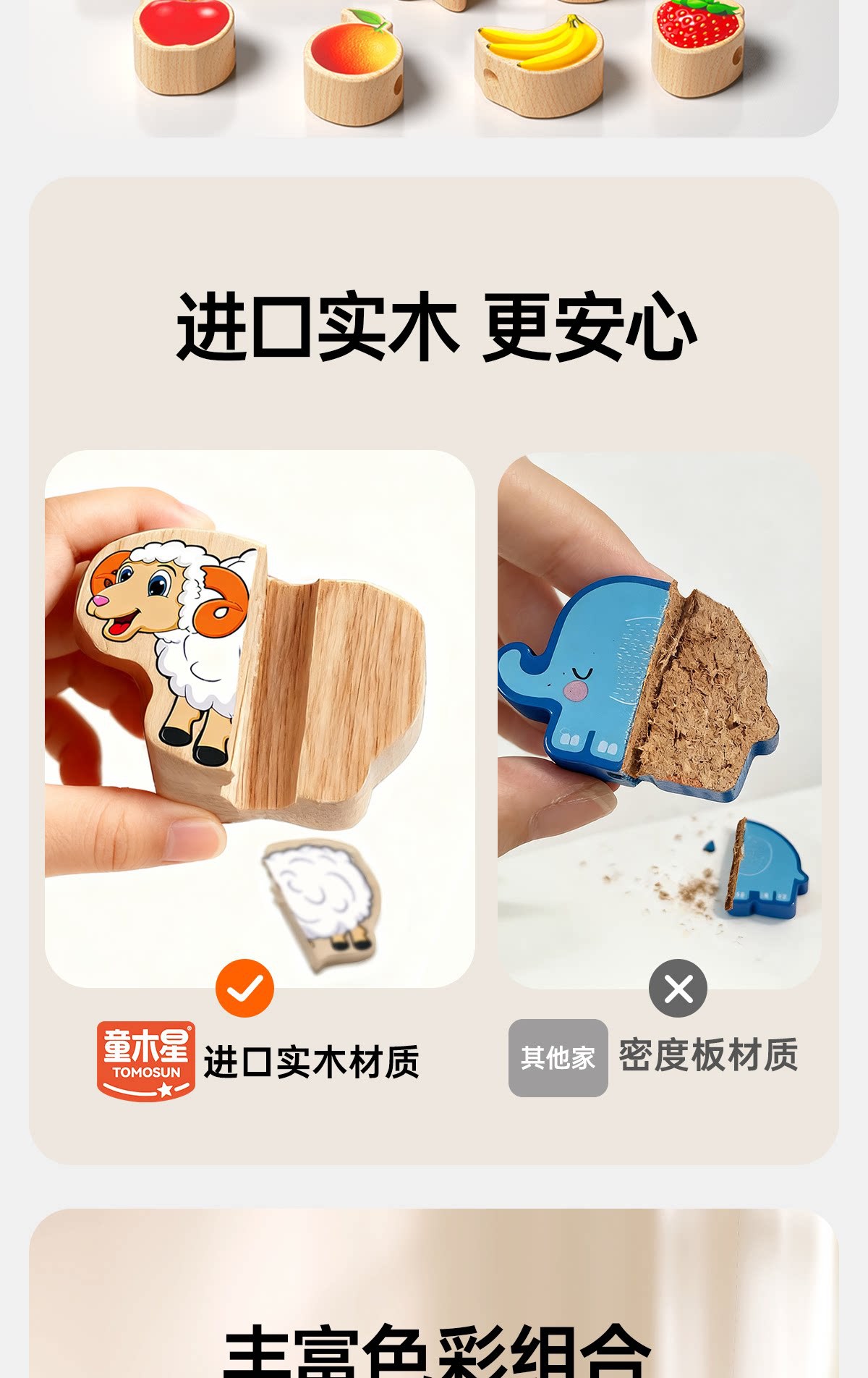 solid wood large-particle bead string with 42 beads [fruits + animals +4 strings] in a bag