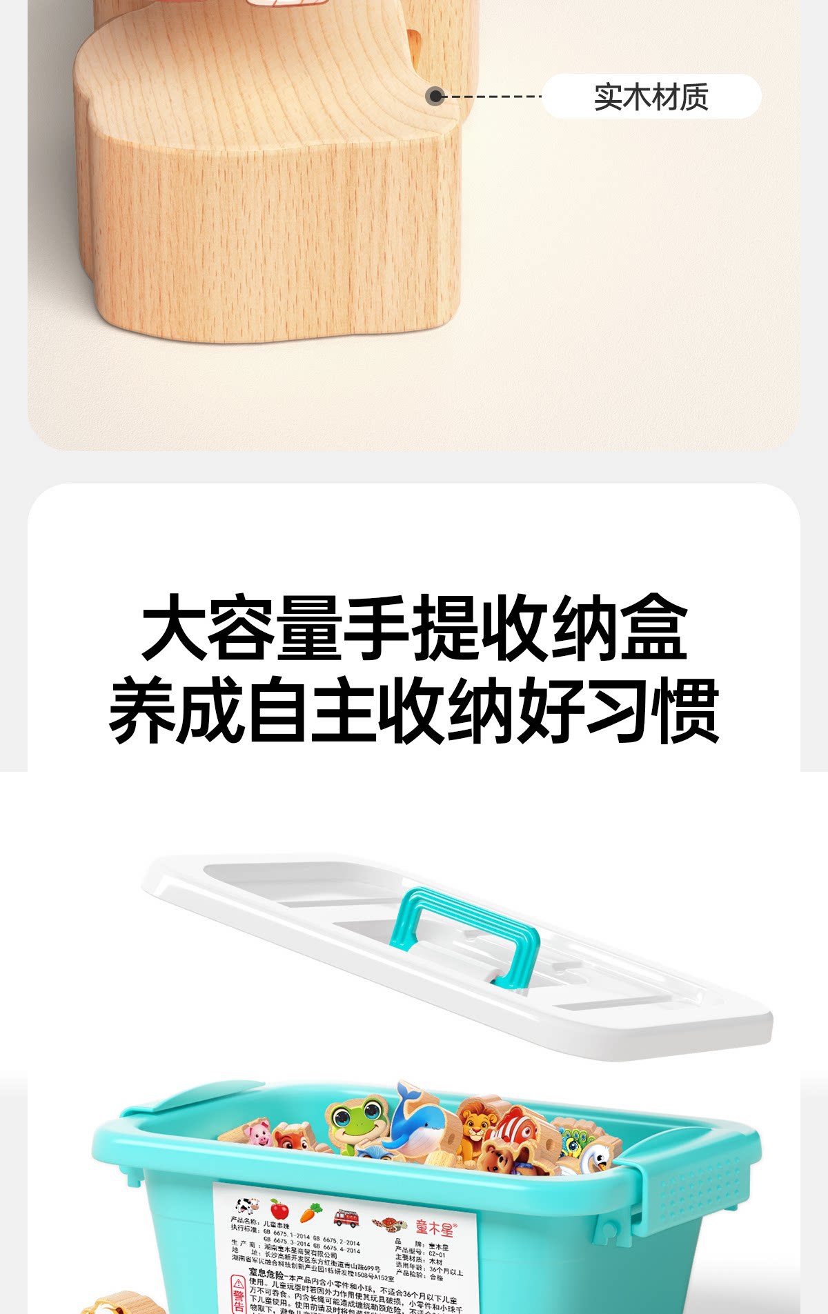 solid wood large-bead stringing toy with 69 beads [fruits + animals + vegetables + vehicles +6 strings] in a storage box